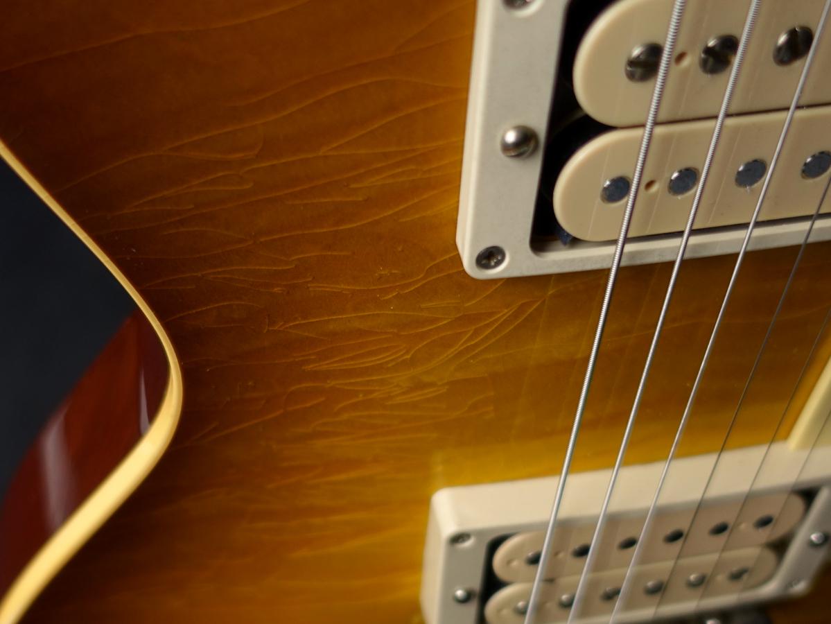 トップのフィギュアドメイプルは、力強くもバランスの取れたリアルな表情、ヴィンテージライクな雰囲気を醸す"Golden Poppy Burst"がナイスマッチの1本です。