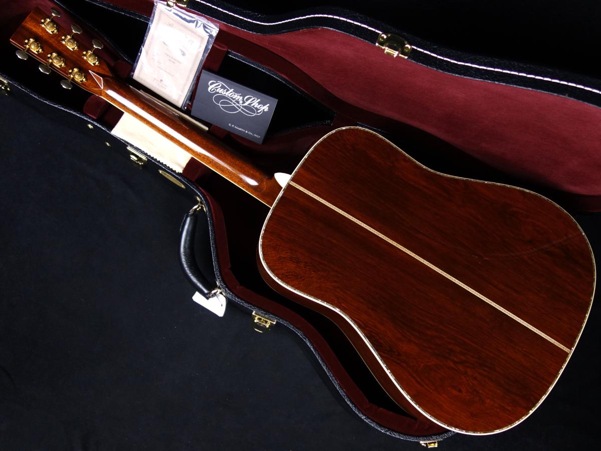 トップには非常に木目の整ったアディロンダックスプルース、サイド/バックに均整の取れたマダガスカル・ローズウッド、マホガニーネック、エボニー指板/ブリッジという贅沢なウッドマテリアル用い、マーティンカスタムショップの高い技術力によって組み上げられたこちらの逸品。
