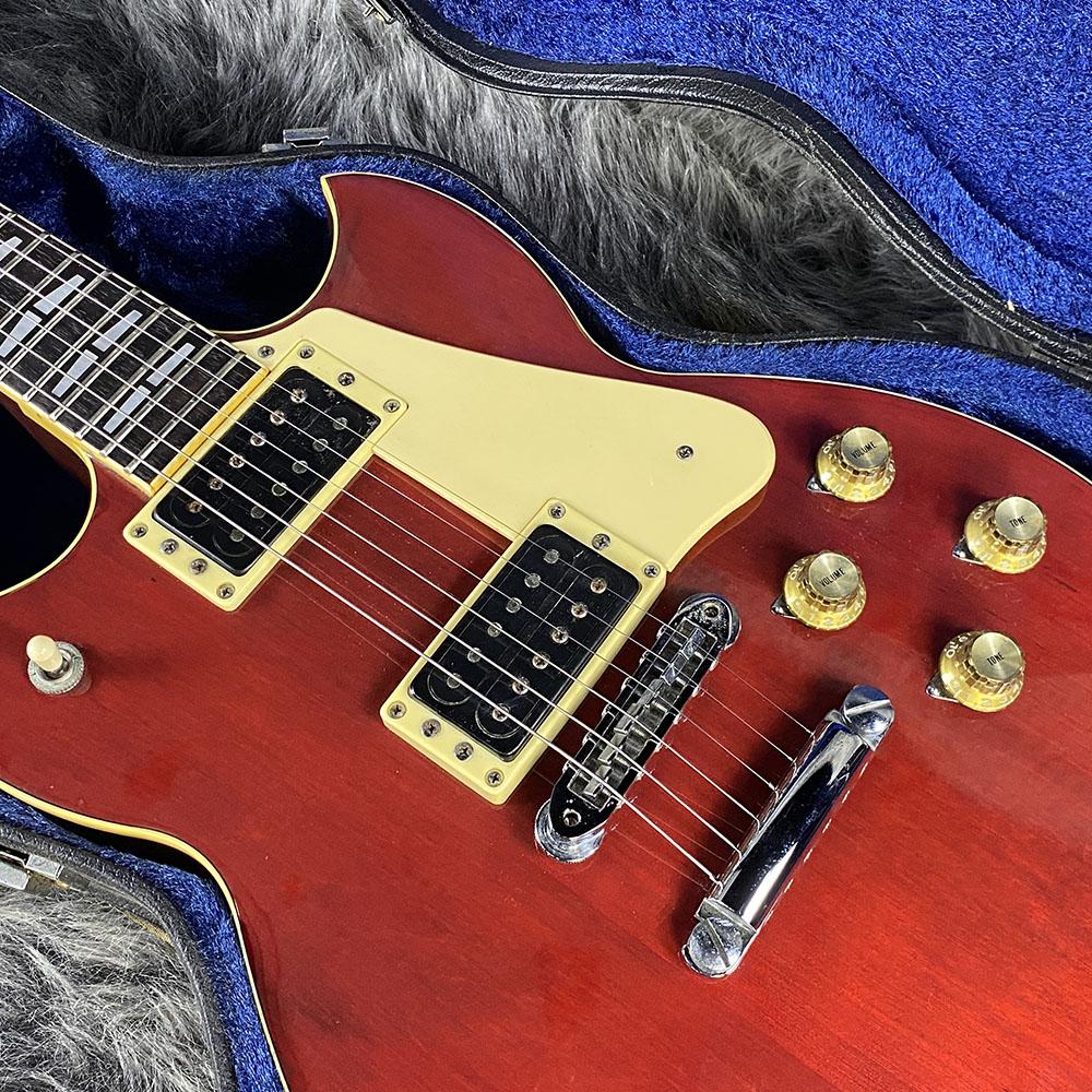 当時のカタログより、メイプルトップにナトーボディ、ローズ指板/マホガニーネックをセットネックジョイント。