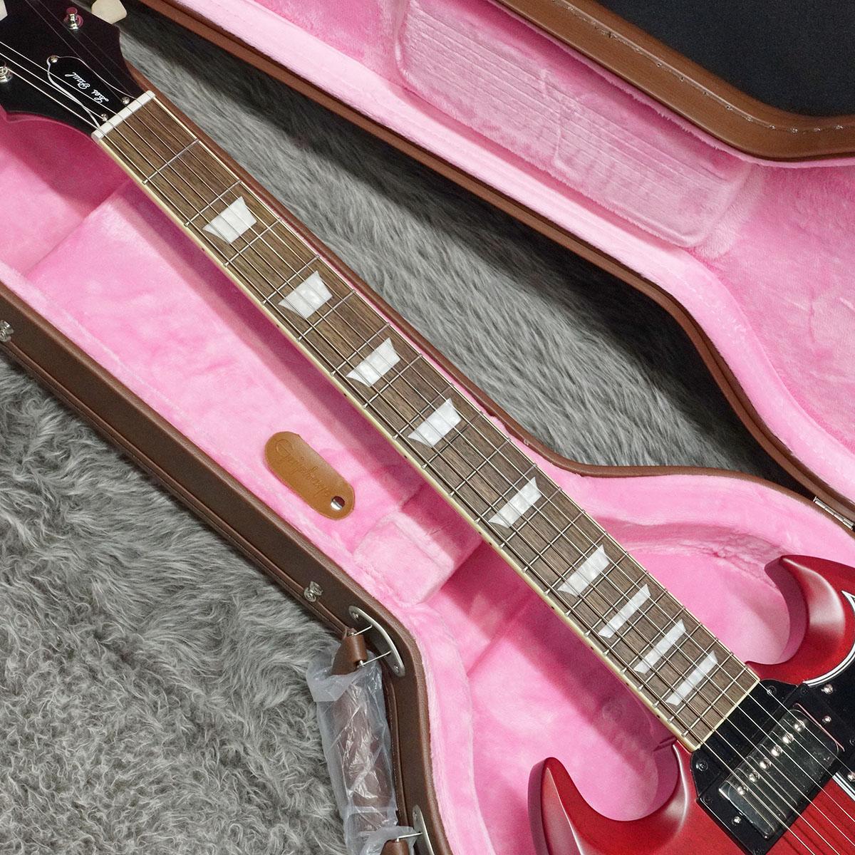 チューナーのつまみ部分では歴史的なダブルリングデザインを採用。伝説的なSGのスタイリング・外観をすべて備え、ヴィンテージスタイルのハードシェルケースが付属となります。