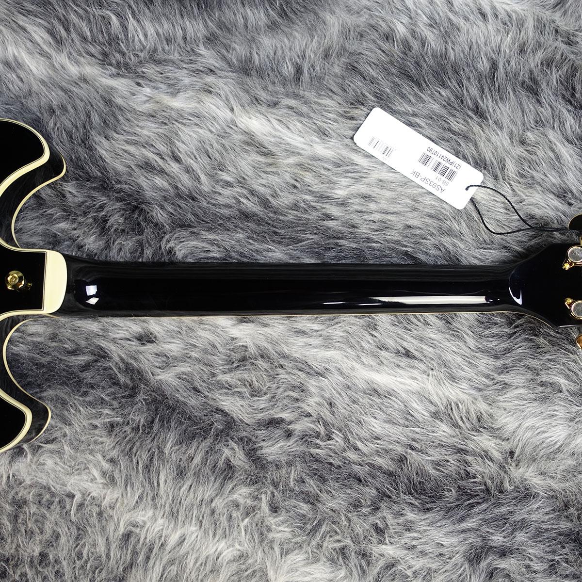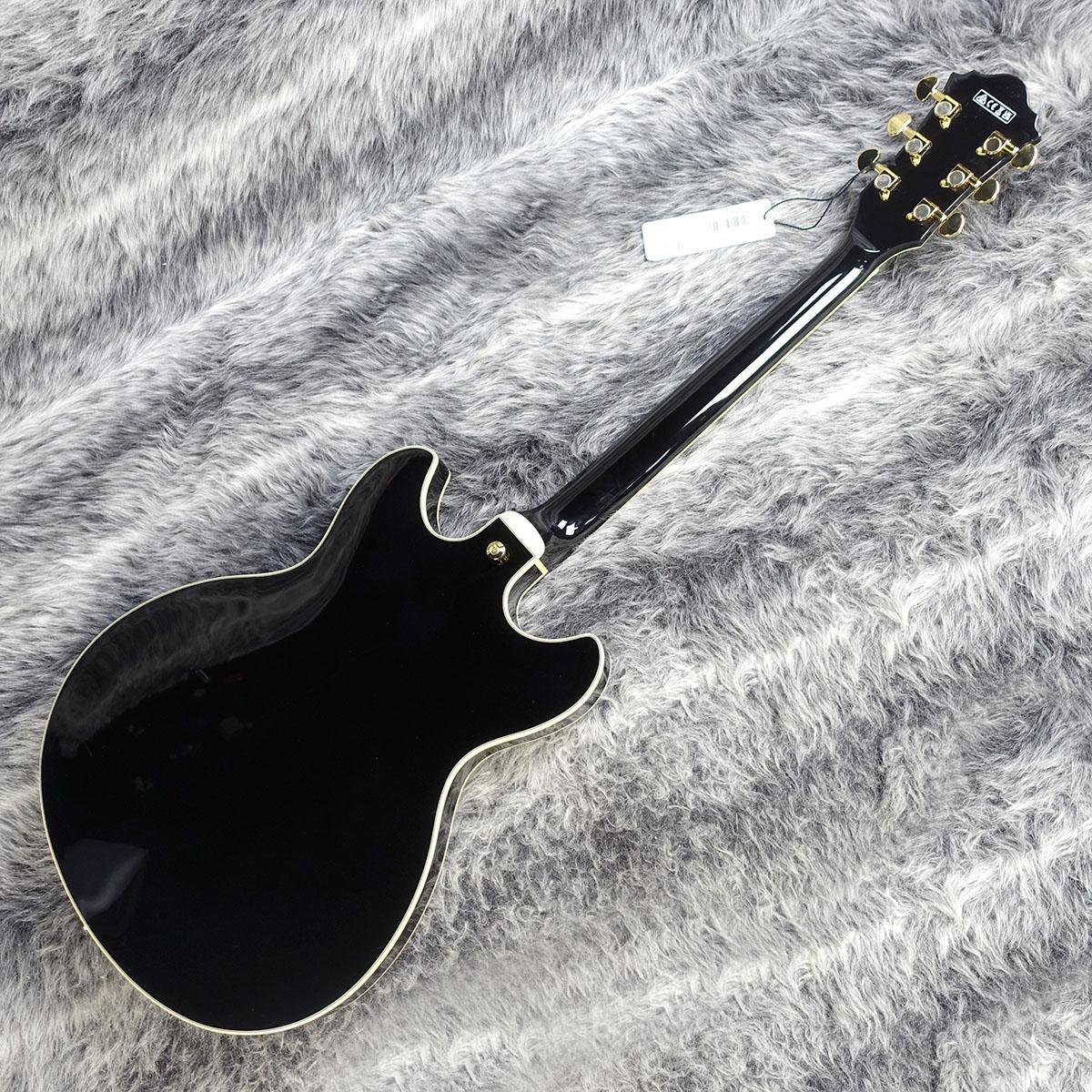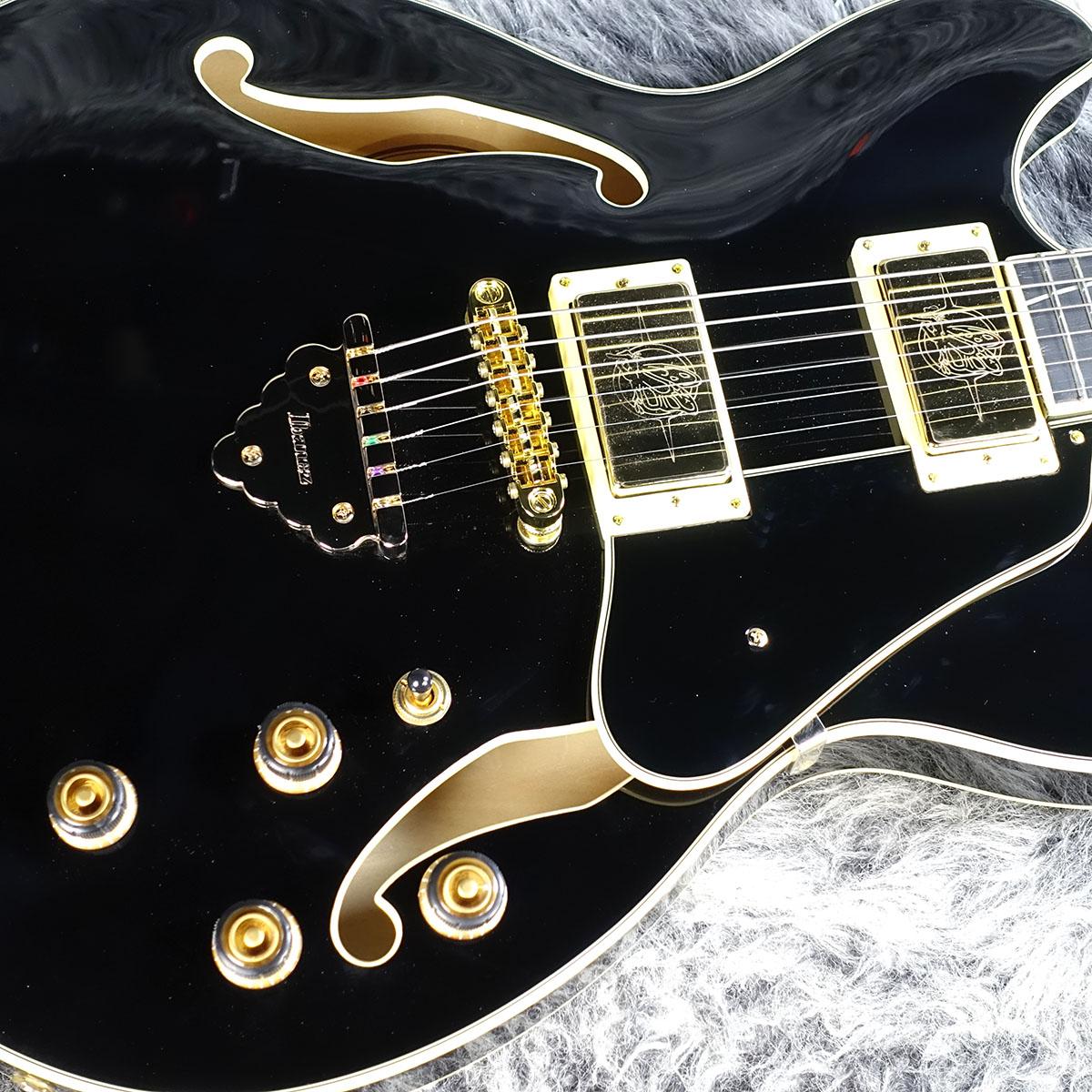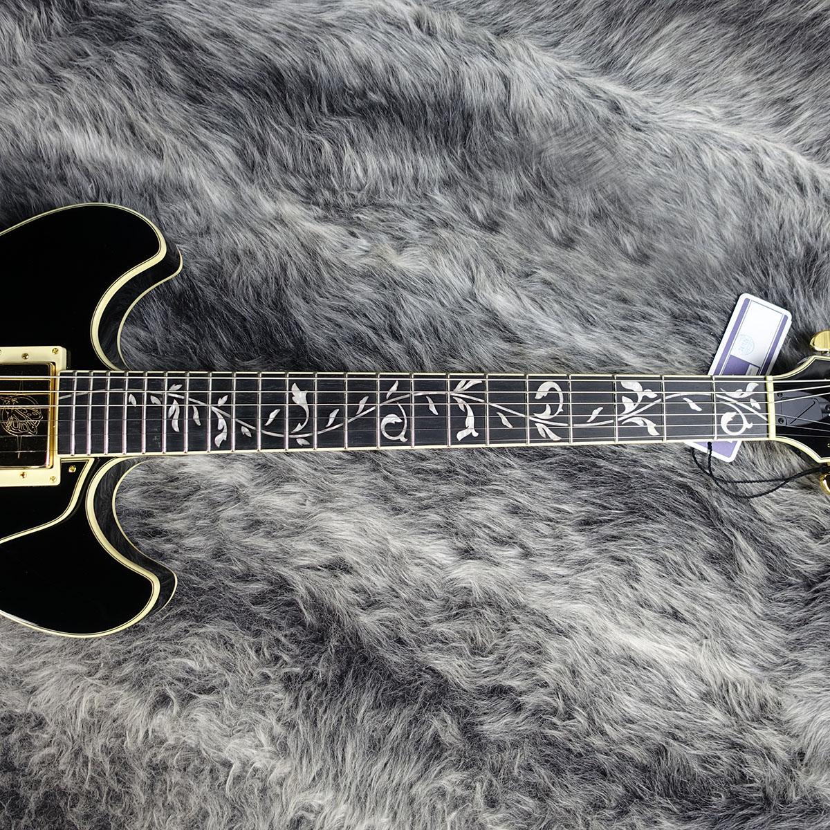 オールブラックボディに引き締まる印象を与えるバインディング、ツリー・オブ・ライフインレイ、ゴールドパーツ等が相まって高級感と落ち着きのあるルックスにまとまっています。