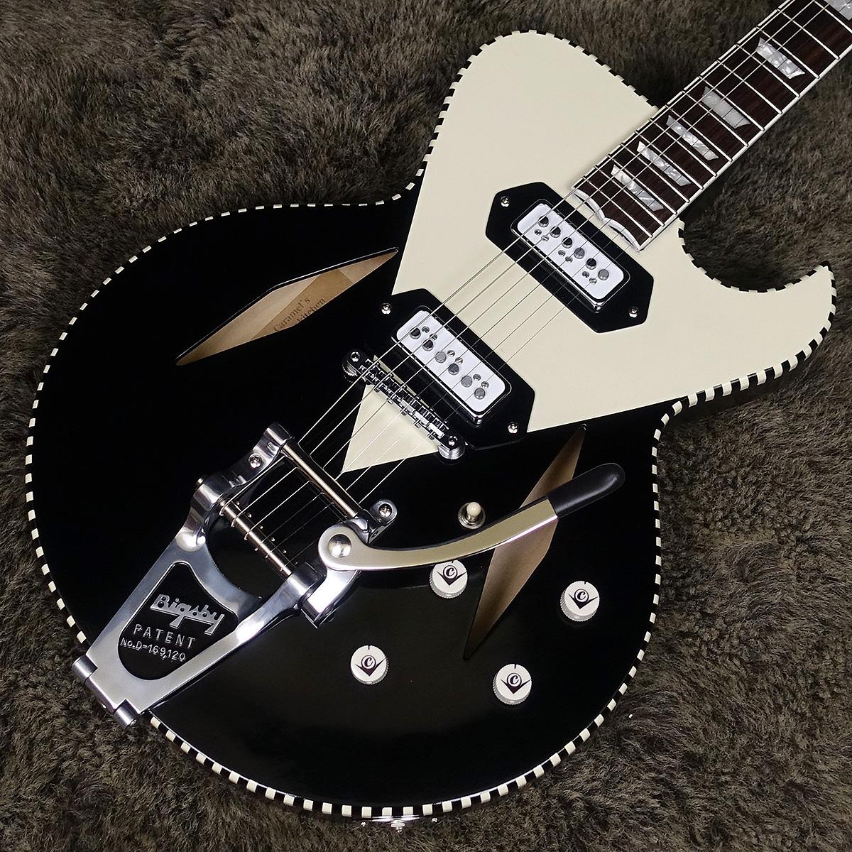 ダイアモンドfホール、そしてビグスビーのビブラートユニットB7があいまって一際目を惹く個性的なデザインのセミアコースティックギター。