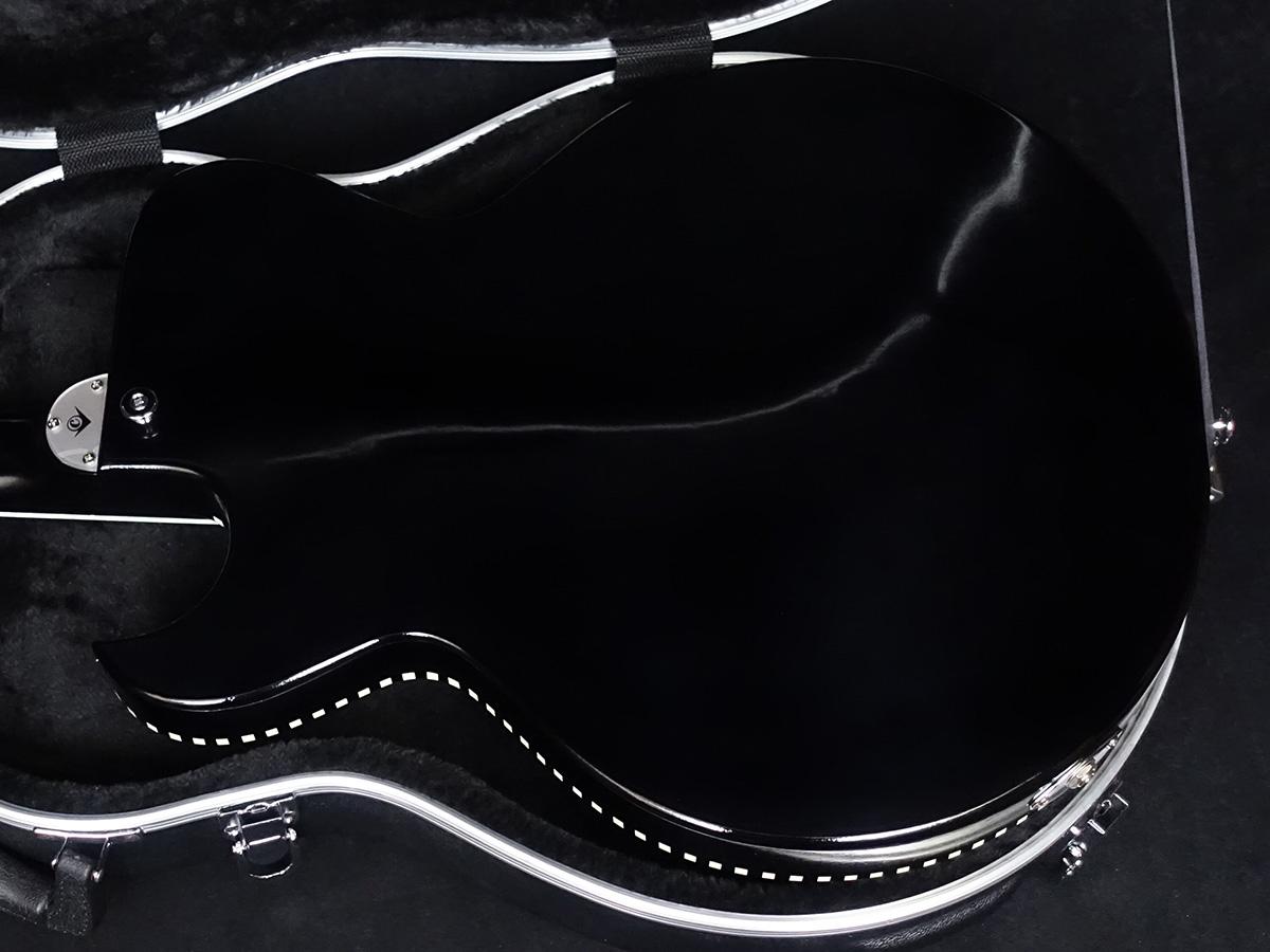ボディのトップ、バック、サイドともにメイプル材プライウッドを使用し、マホガニーとメイプル材を組み合わせた独自のセンターブロック構造の薄型ボディ。