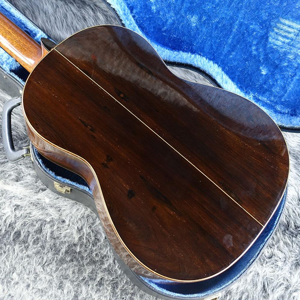 本器はスプルース単板トップにエキゾチックな木目が特徴のハカランダ単板をサイド&バックに使用したオール単板ボディ。