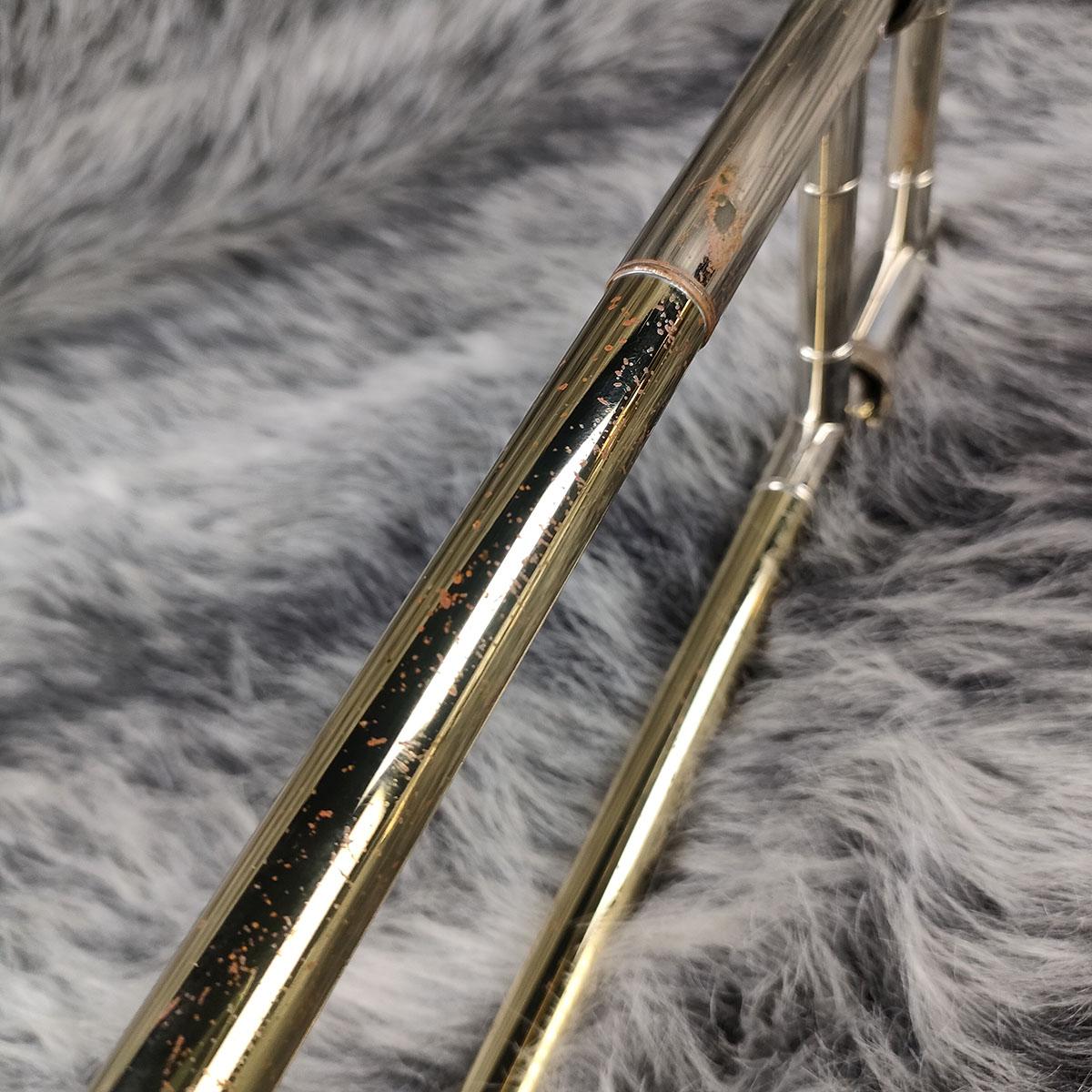 目につくダメージとしては、ベル胴部に約2cm、スライドに約3cm程のラッカー剥げに伴う錆が見受けられます。