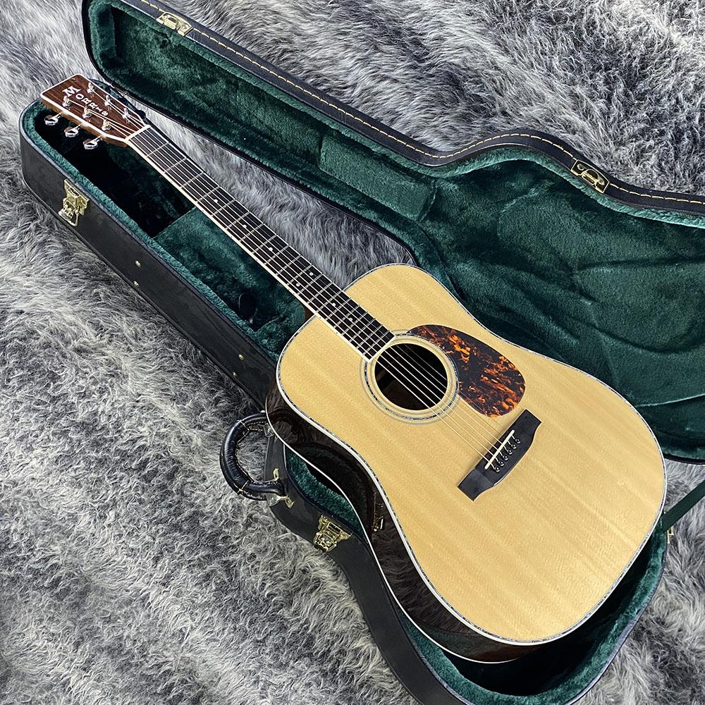 シトカスプルース単板トップにローズウッドサイド&バックを採用したウッドマテリアル。