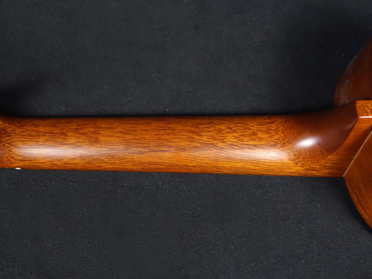 オールマホガニーにロゼッタ/ポジションマークのインレイのみのシンプルな装飾が相まって、高級感と落ち着きのあるルックスにまとまっています。