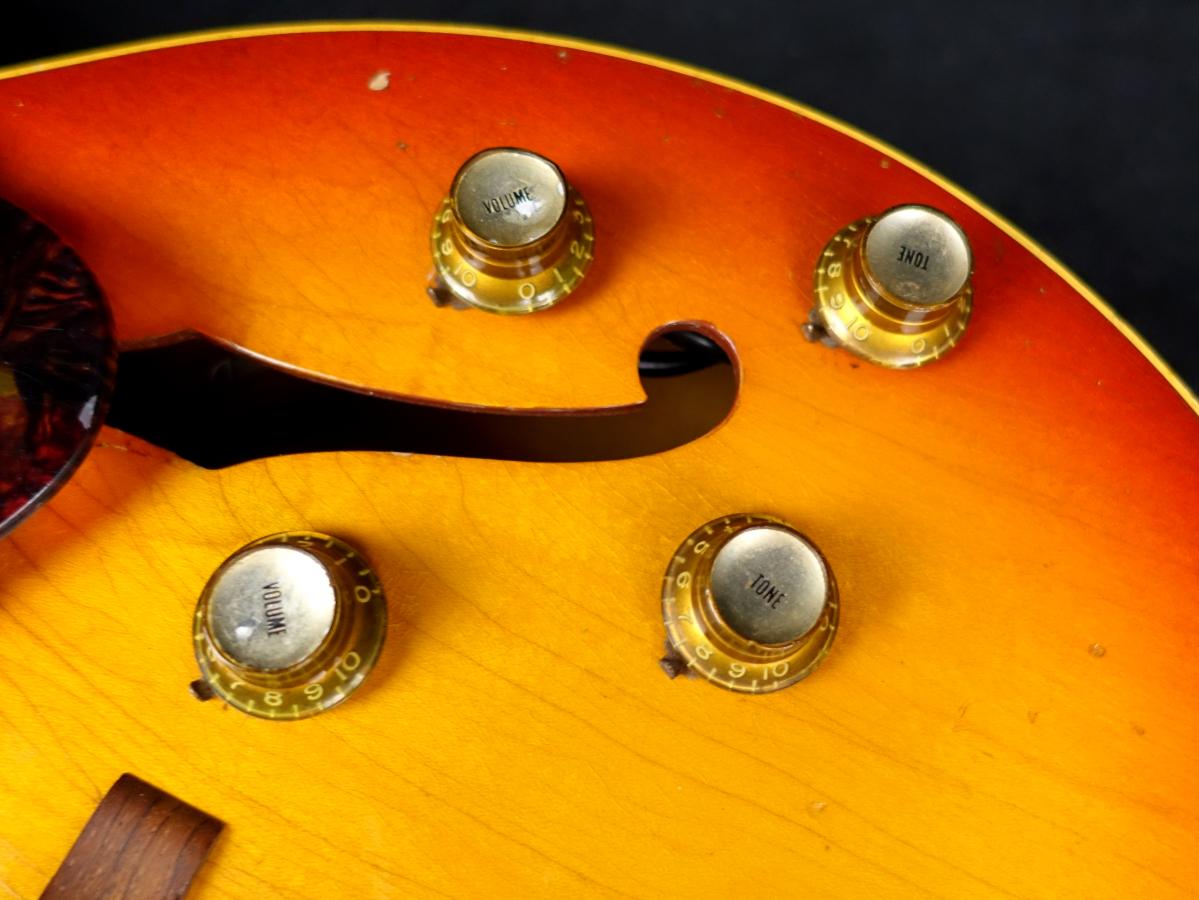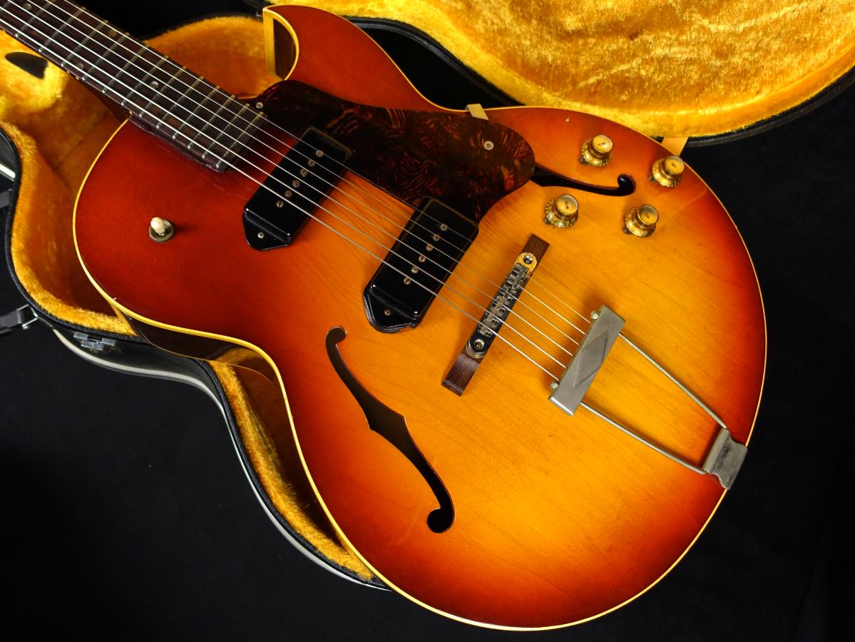 ダブルピックアップや、カッタウェイ採用という扱いやすさが売りのES-125DC、シリアルナンバー、ポットデイトから判断して1965年頃の製造と思われる1本です。