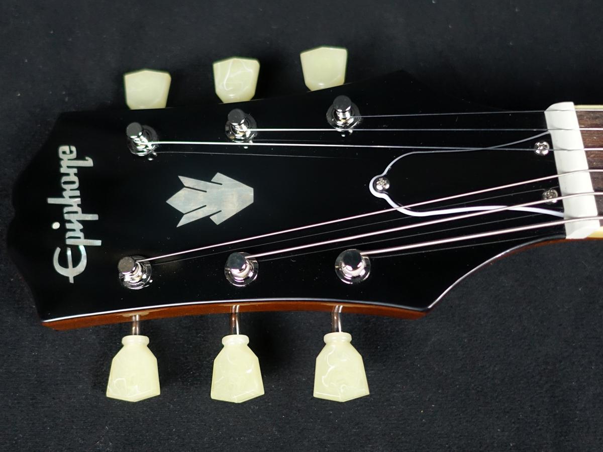 合板メイプルのトップ・サイド・バック、メイプルのセンターブロックのウッドマテリアルに、エピフォン製アルニコクラシックPROハムバッカーを搭載。
