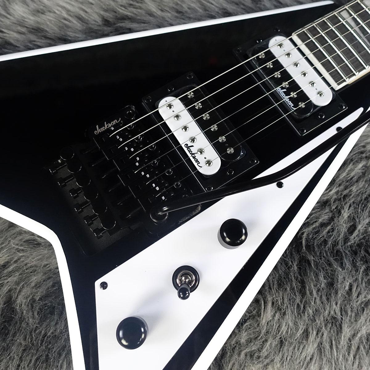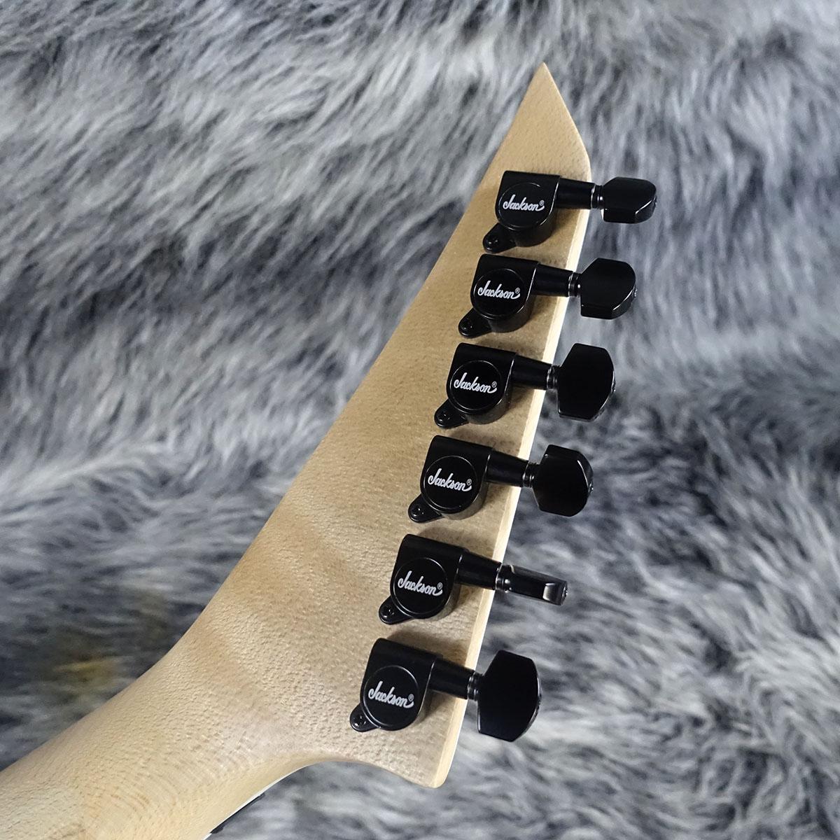 その他の機能として、2基のセラミック・マグネット材使用のジャクソン高出力ハムバッカーPU、シングルのボリューム&トーン・コントロール、3ウェイ・トグルスイッチ、ジャクソンブランドのFloyd Roseダブルロック・トレモロブリッジ、密閉型ダイキャストチューナーを採用しています。