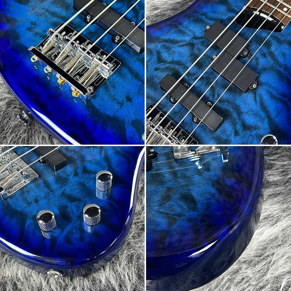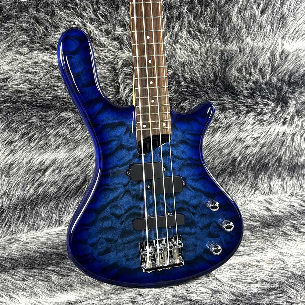 バスウッドボディに、ボディトップには美しいキルトメイプルをラミネート。