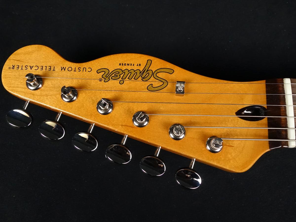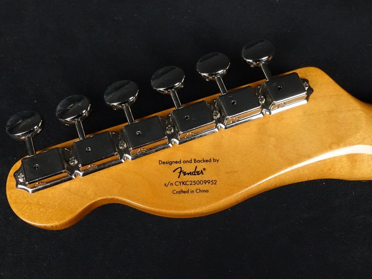 このSquierのレトロモデルは、当時のスタイルを反映したヘッドストックデカール、重厚なニッケルメッキハードウェア、そしてクラシックな雰囲気を醸し出すヴィンテージティント仕上げのグロスネックも特徴です。