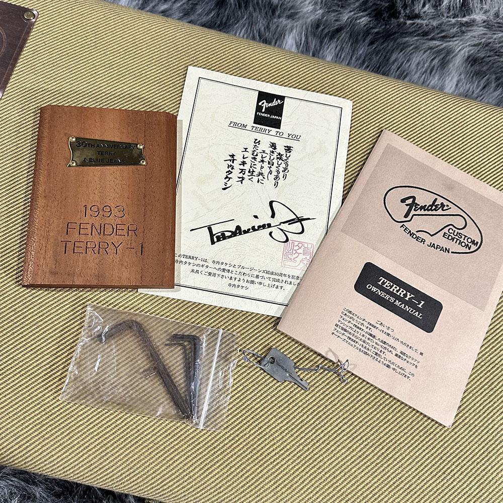 Fender Japanカスタムエディションチームと寺内氏が共同開発され、テレキャスターとレスポール、寺内氏のシグネイチャーYAMAHA BJを 合体させたようなオリジナリティの高いボディシェイプとシンプルながら扱いやすいコントロール、安定感のあるオリジナルブリッジシステムと、デザイン、プレイヤビリティ共に完成度の高い一本です。