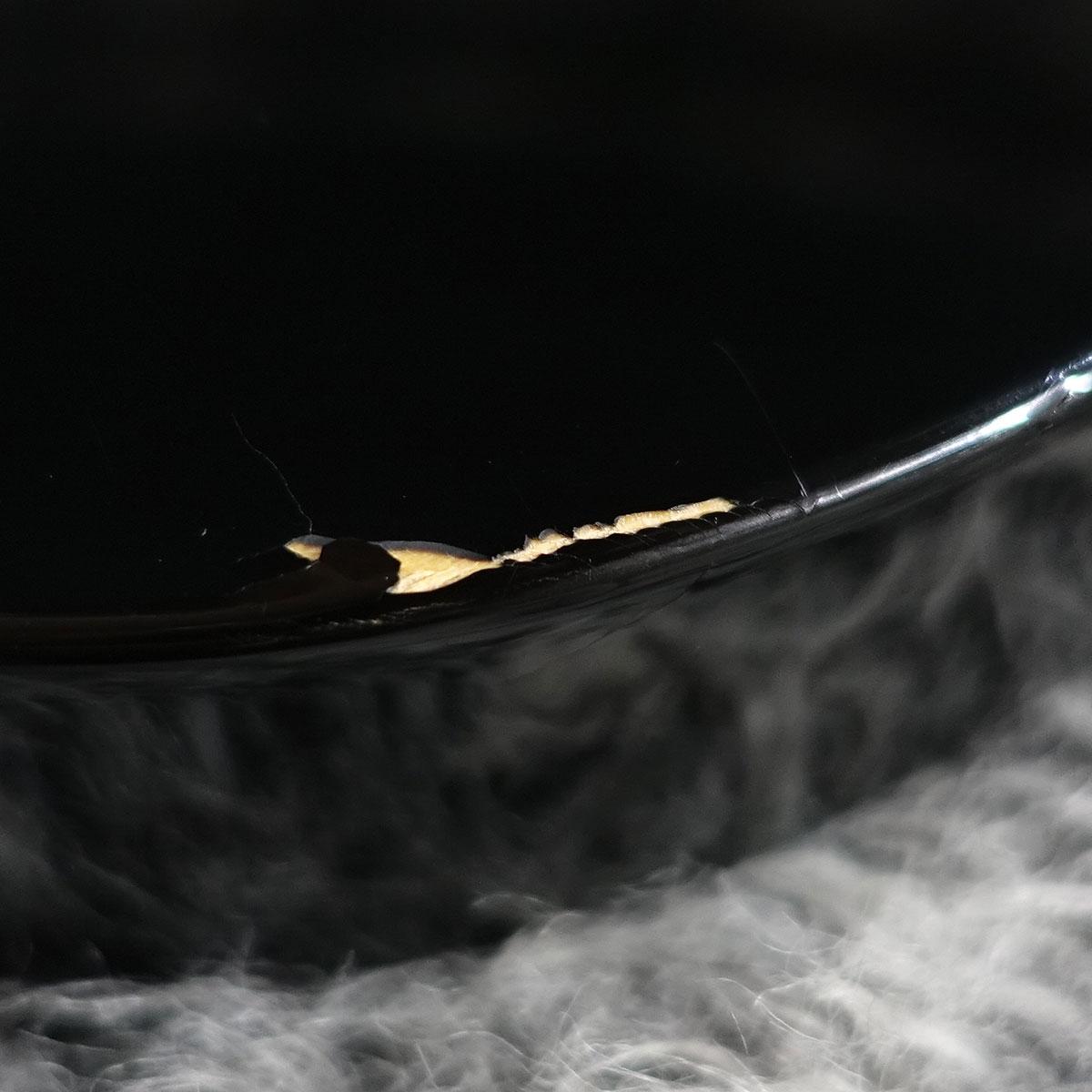 フレットにはうっすらと弦による凹みがあるものの、全体的に約7割ほどの高さを残しており、現状気になるほどのビビリや音づまりはございません。