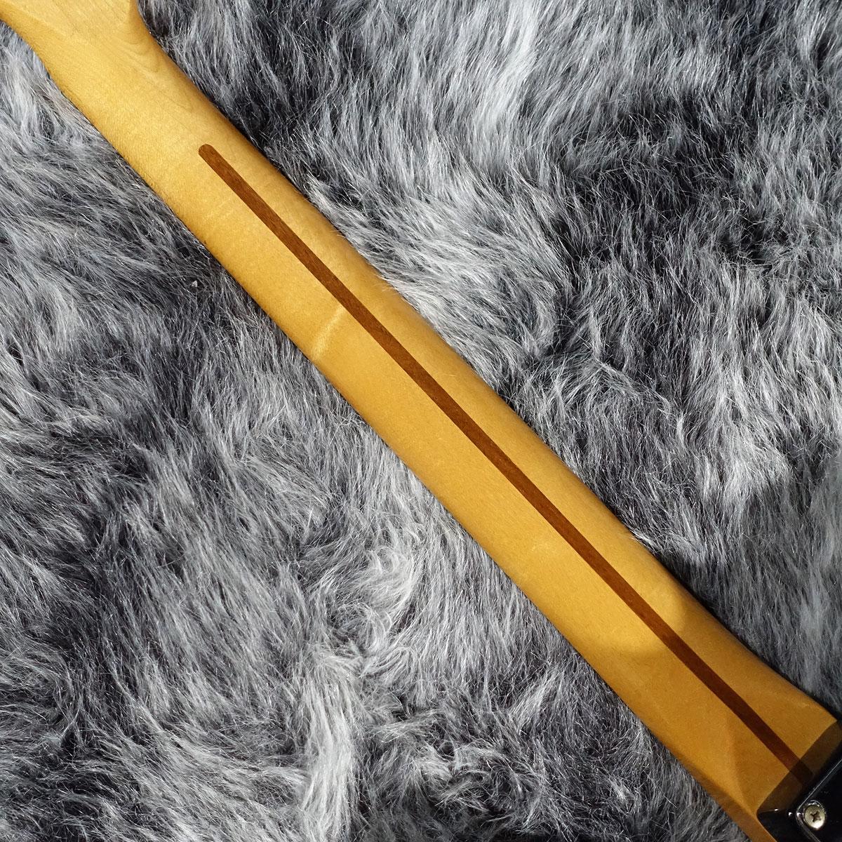 ネック材はメイプルのワンピース仕様、ボディ材は木目から判断してアルダーが使われております。