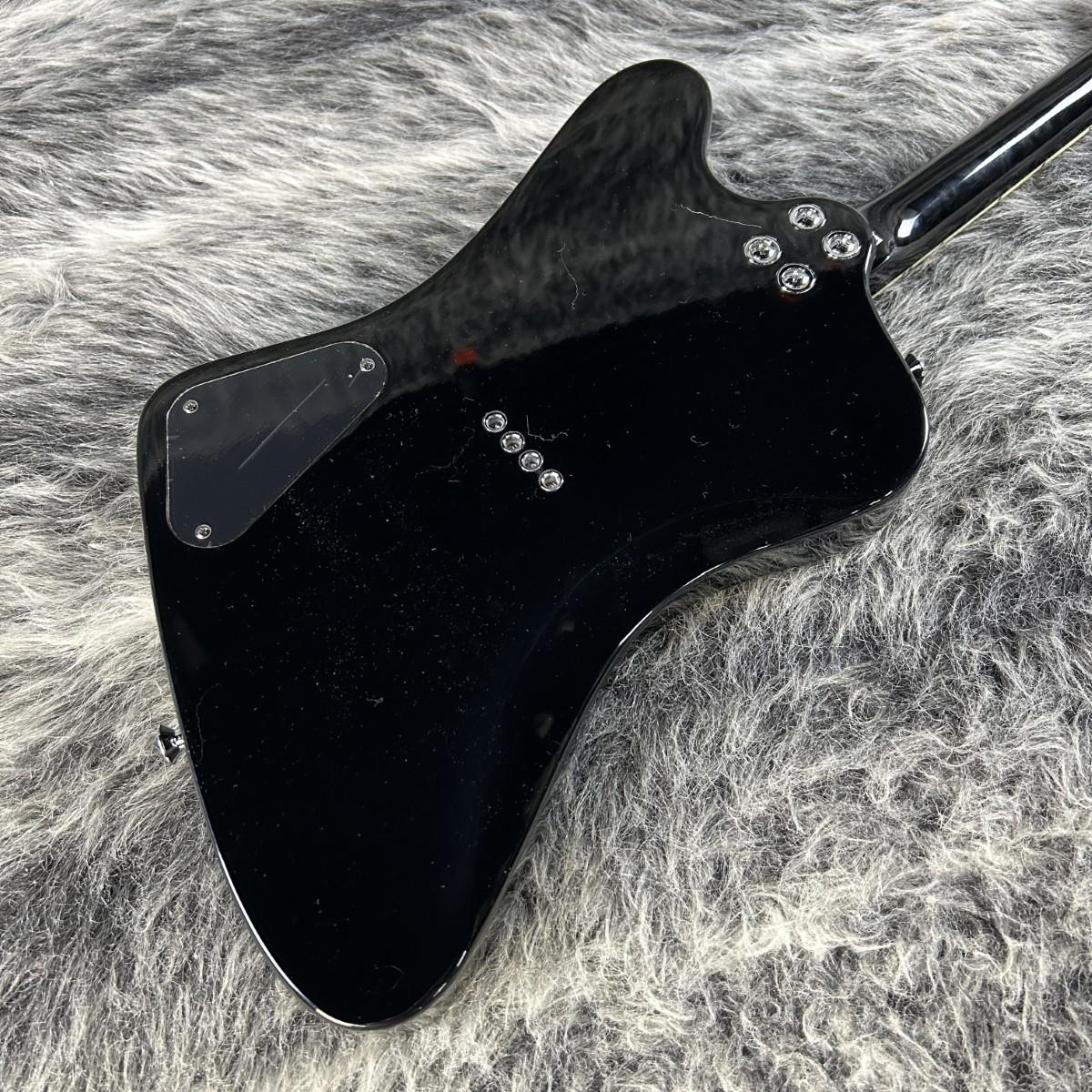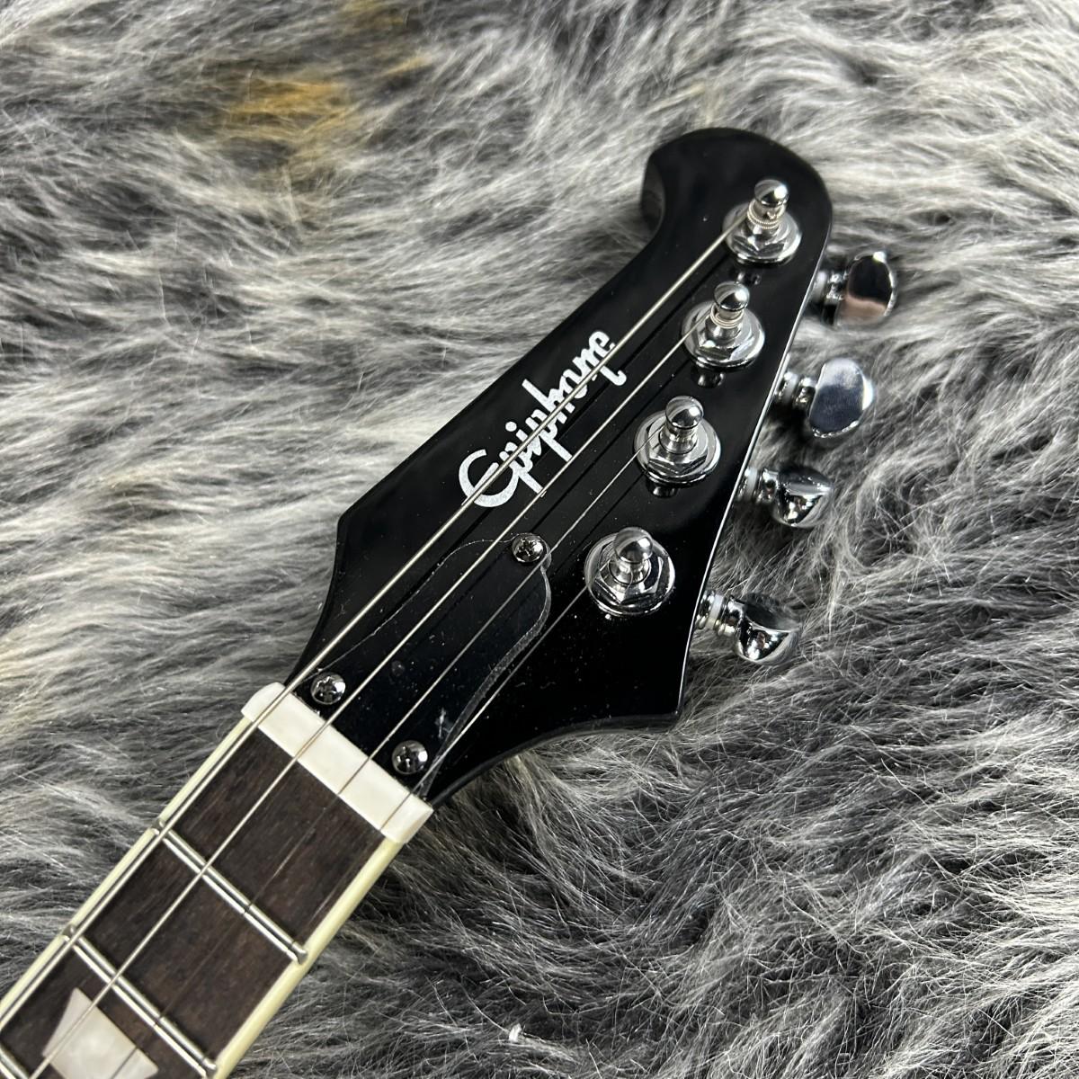 リバース仕様 Firebirdを彷彿とさせるボディにはソリッド・ナトーウッドを採用。トラ ペゾイド・インレイが施されたネックはボルトオン・ジョイントでボディに接合されてい ます。4つのGrover Mini Rotomaticチューナーを備えたReverse Firebirdスタイ ルのヘッドストック、ボディトップにマウントされた裏通しタイプのブリッジ、 Epiphone Firebirdピックアップとマスターボリューム&トーンコントロール等を装備。 エピフォンのギグバッグも付属しています。