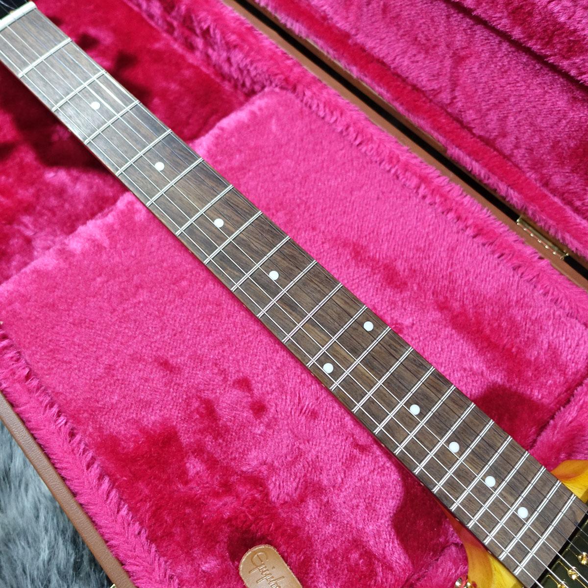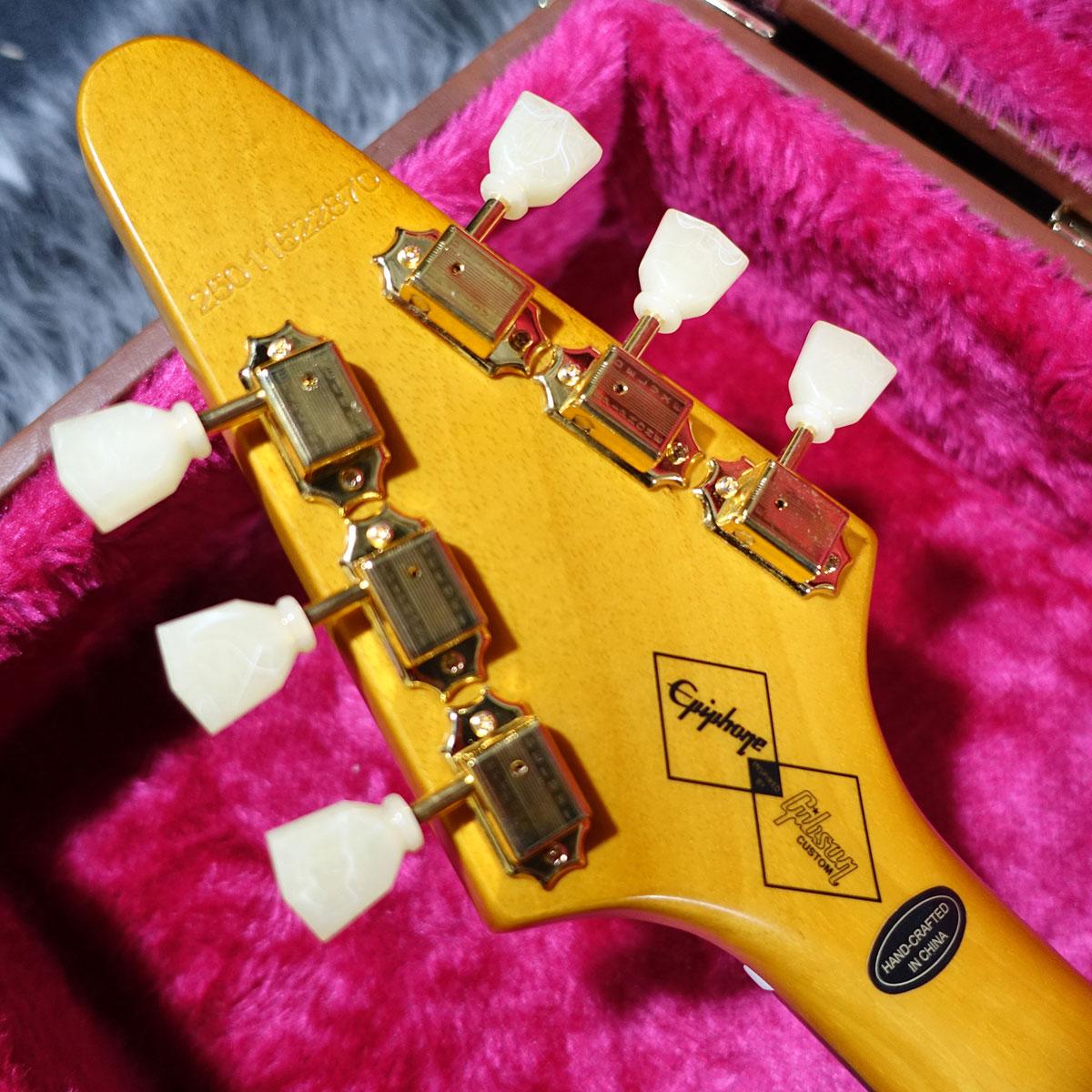 ヘッドストック裏にはEpiphone x Gibson Customロゴがあしらわれており、同様のロゴ入りハードシェルケースが付属されています。
