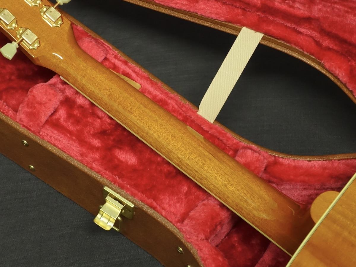 トップ材にスプルース、サイドバックにマホガニーを使用したオール単板のスクエアショルダーボディにハチドリの描かれたピックガードを施した定番スペックのハミングバード。