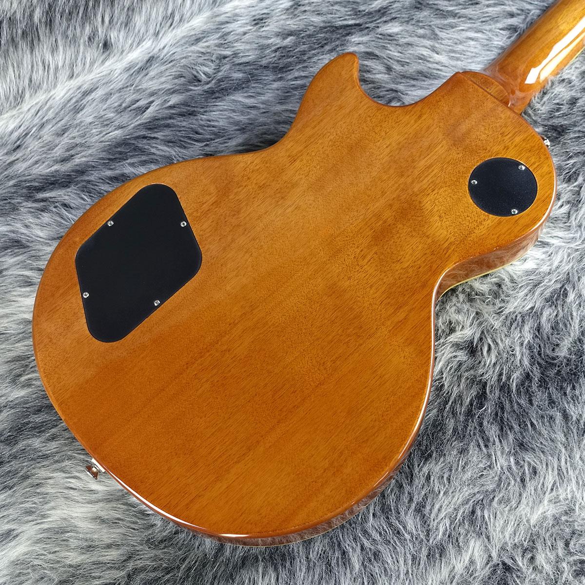 ボディトップにはメイプルが貼られ、上面にはAAA グレードのフレイムメイプル化粧板があしらわれています。1959ラウンドミディアムCシェイプのネックにはバインディングが施され、ロングネックテノン方式でボディにジョイントされています。ローレル指板にはクラシカルなディッシュインレイが施され、カラマズーヘッドストックにはヴィンテージデラックスチューナーを搭載。電装系には定評のある2基のProbuckerハムバッカーピックアップ、ダイヤルポインタ付きのゴールドトップハットノブを採用。Graph Techナット、CTSポット、往時の製法に則った配線など、拘りの仕様群により魅力が一層高められています。