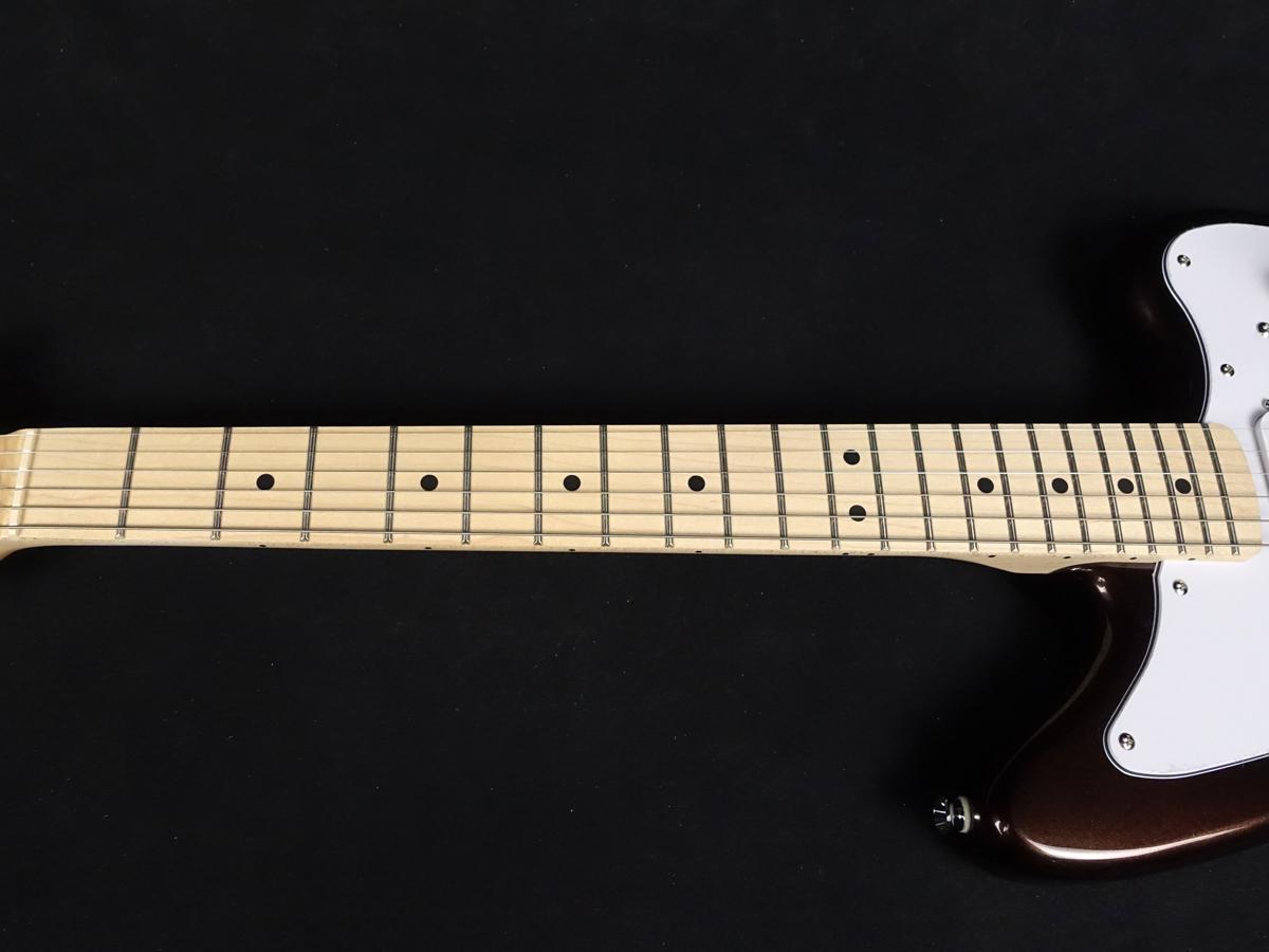 このモデルは、スリムな軽量ボディ、快適な"C"シェイプの24インチショートスケールネック、フローティングブリッジ付きヴィンテージスタイルトレモロ、スムーズで正確なチューニングと容易な弦交換を可能にするスプリットシャフト付きシールドダイキャストチューニングマシンなど、プレイヤーフレンドリーな仕様を採用しています。