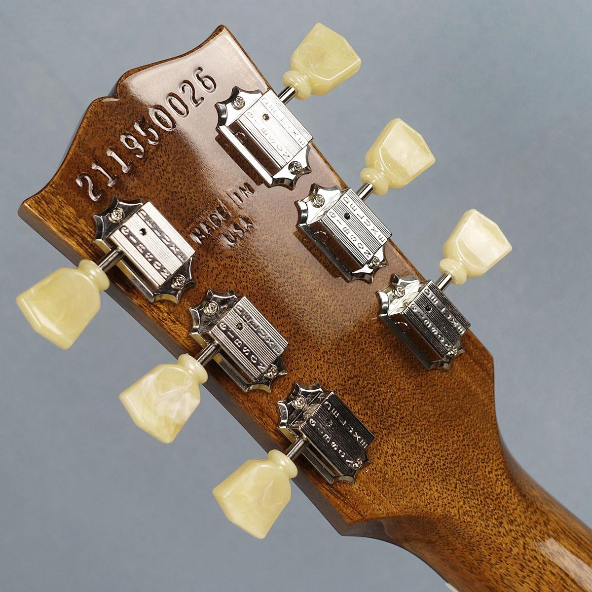このような特色が加えられながらも、Les Paul Standard 50sの広く愛される基本仕様に変更はなく、ウェイト・リリーフ無しのソリッド・マホガニーボディ、AAグレードのフィギュアド・メイプル・トップ、丸みのある50年代スタイルのマホガニー・ネック、ローズウッド指板、22フレット仕様のミディアムジャンボフレット、トラペゾイド・インレイを擁しています。また、ABR-1 Tune-O-Matic™ブリッジ、アルミ製ストップバー・テイルピース、キーストーンボタン仕様のVintage Deluxeチューナー、ダイヤルポインター付きのエイジド・ゴールド・トップハット・ノブを搭載。