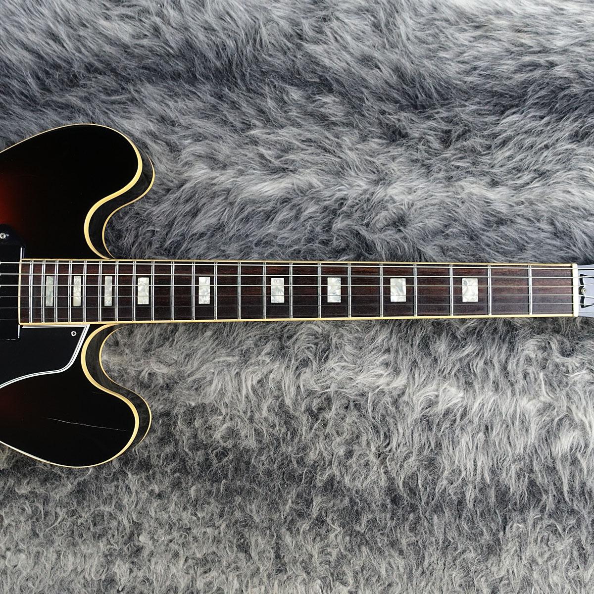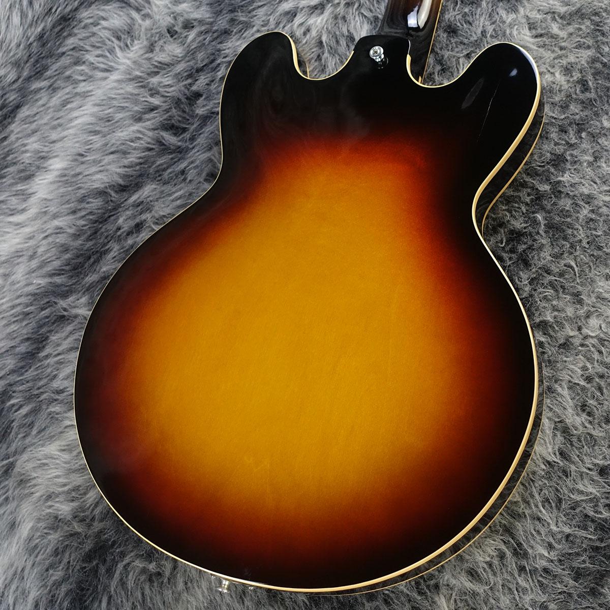 センターブロックを持たないフルアコースティック構造のおかげで、セミアコと比較してさらにウォーミーなサウンドが魅力。3キロを切る重量と豊かな生鳴りも特徴です。