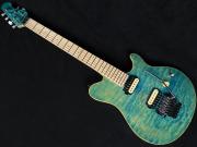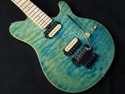 ウッドマテリアルはバスウッドボディ、トップに華やかなキルトメイプルをラミネートした華やかなルックス。ネック/指板材にハードメイプルを採用しております。
