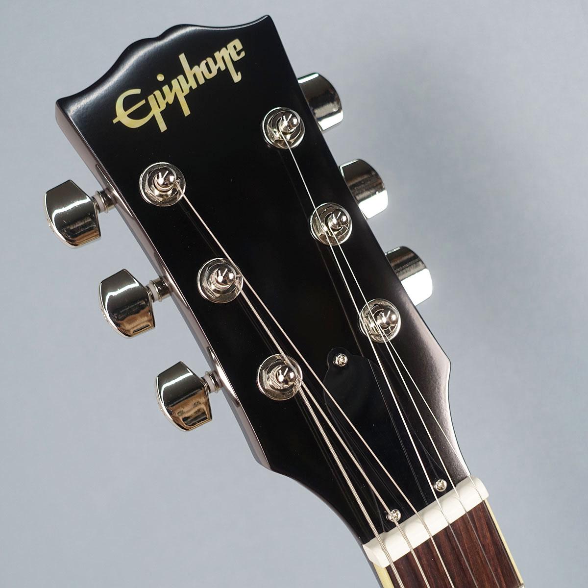 ヘッドストックはギブソン伝統の“オープンブック”スタイルを踏襲し、エイジド・マザー・オブ・パール素材によるEpiphoneロゴが埋め込まれています。