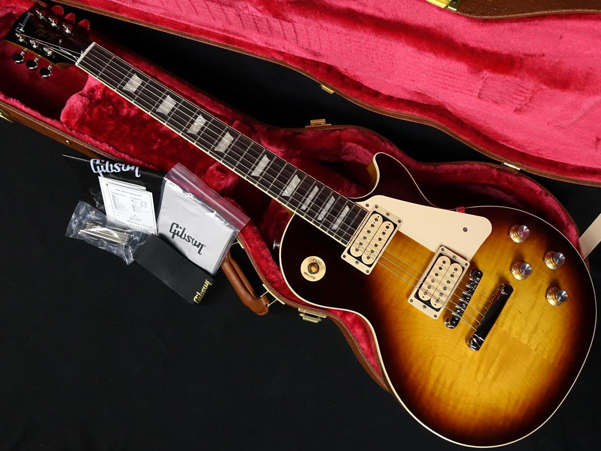このような特色が加えられながらも、Les Paul Standard 60sの広く愛される基本仕様に変更はなく、ウェイト・リリーフ無しのソリッド・マホガニー・ボディ、AAグレードのフィギュアド・メイプル・トップ、Slim Taperプロファイルのマホガニー・ネック、ローズウッド指板、22フレット仕様のミディアムジャンボフレット、トラペゾイド・インレイを擁しています。