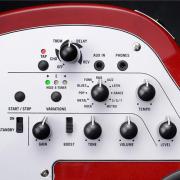 エフェクターとリズム・マシンについては、デジタル・モデリング・アンプVOX MINI GOシリーズの技術を踏襲。エフェクトはコーラス/トレモロ/ディレイ/リバーブを搭載しています。ディレイとリバーブについてはタップテンポの機能も備えています。リズム・マシンはメトロノームを含む11種類のジャンルを用意。各ジャンルにつき3バリエーションとなり、トータル33種類のリズム・パターンを内蔵しています。
