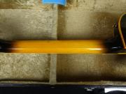 目立つ箇所でヘッド上部に木部の露出を伴う広範囲の塗装欠け、ボディ下部エッジにバインディングの劣化や剥がれ、それらに伴うバインディング周辺の塗装の劣化や欠けが見受けられます。