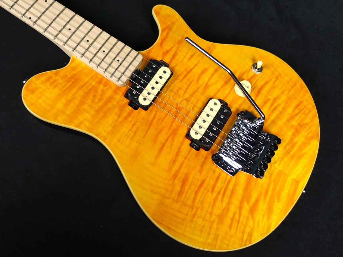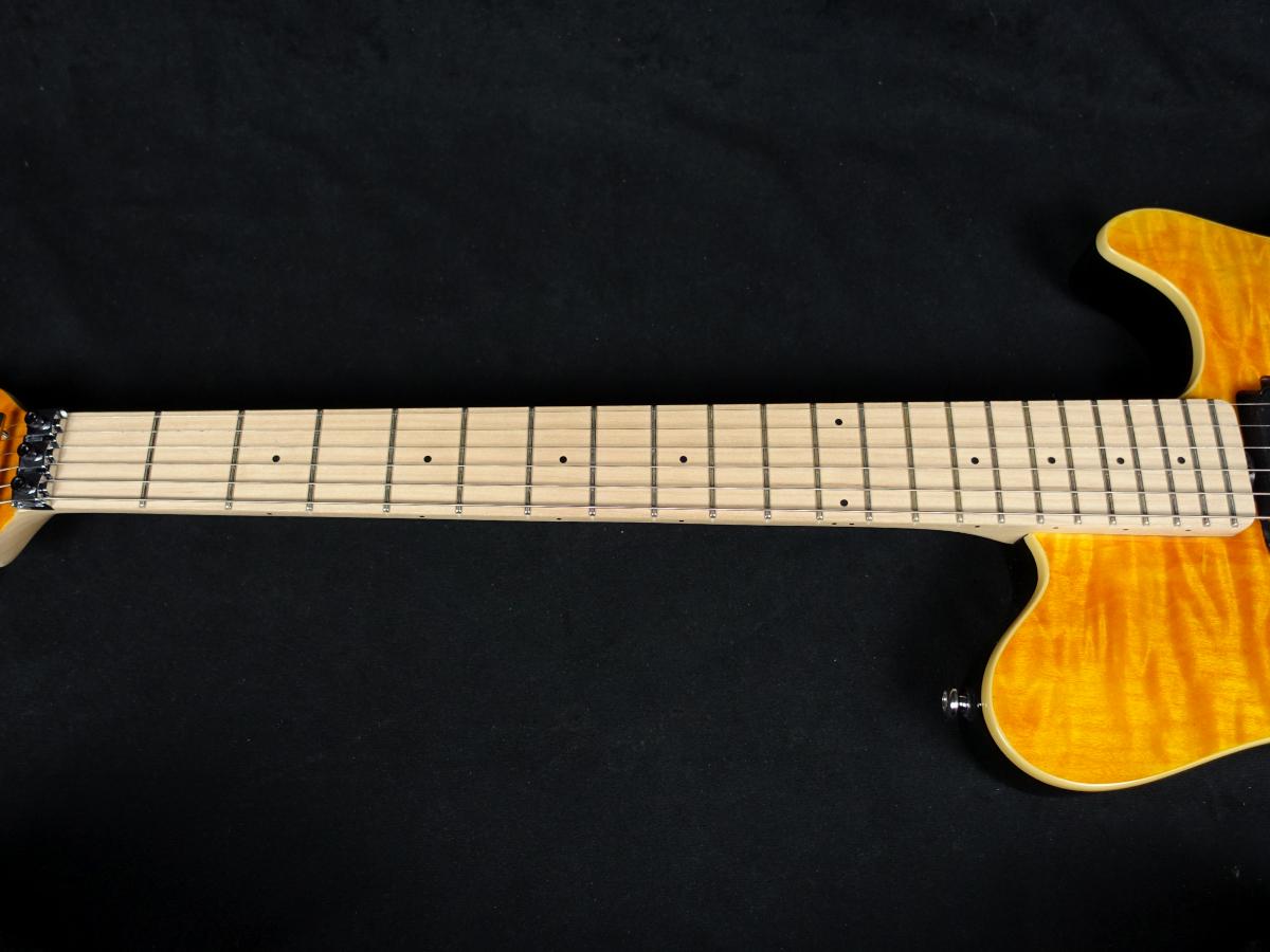 オリジナルのバスウッドボディに華やかなキルトメイプルをラミネートした華やかなルックス。