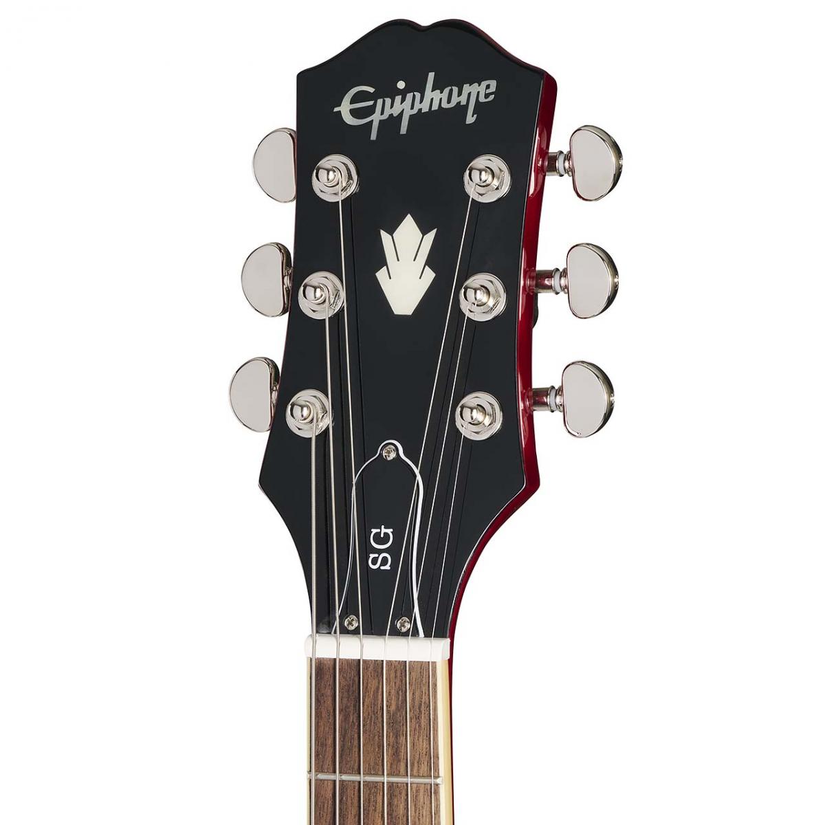 SGスタンダードはプレイヤーにフィットするコンター加工付きのボディ形状を持ち、ダブル・カッタウェイにより22フレット全てのポジションへの容易なアクセスを実現しています。セットネック方式でジョイントされたネックはSGの高いサスティン特性に寄与しています。ネックシェイプはスリム・テーパー Cプロファイルが採用され、素早い滑らかなフィンガリングを可能にしています。ミディアム・ジャンボ・フレットが打たれたローレル指板にはパーロイド素材のディッシュ・インレイが施され、12インチの指板R(ラディアス)採用によりロー・ポジションでのコード・プレイやハイ・ポジションでのベンディングの両方をストレスなく行えます。