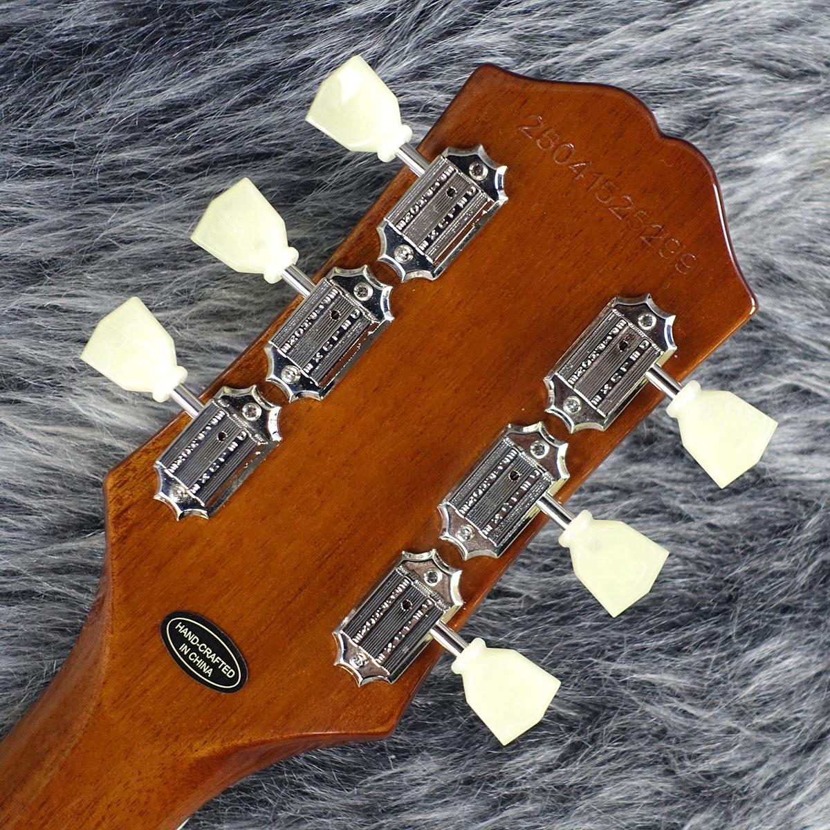 ローレル指板にはクラシカルなディッシュインレイが施され、22フレット仕様のミディアムジャンボフレットを採用。カラマズーヘッドストックにはヴィンテージデラックスチューナーを搭載し、電装系には定評ある2基のProbuckerハムバッカー・ピックアップ、ダイヤル・ポインタ付きのゴールドトップハットノブを採用。