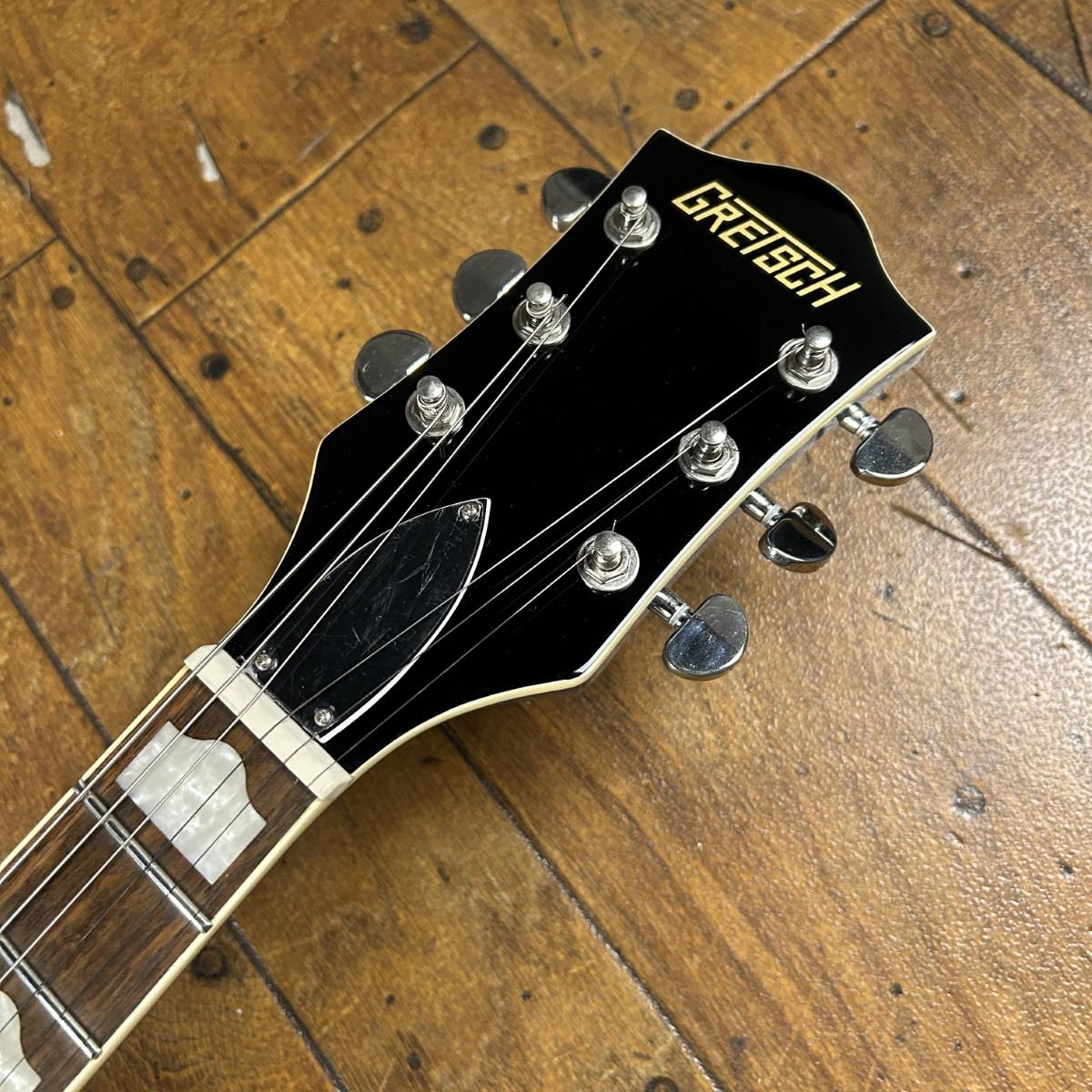 グレッチに期待される、全てのクラシックなヴィンテージスタイルを再現し、ヴィンテージスタイルの黒いコントロールノブ、音の投射性を向上させる拡大されたFホール、アップグレードされた縁飾り付きのエレガントなエイジドホワイトバインディング、滑らかな外観のニッケルメッキ加工ハードウェアを採用。