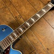 エレガントなパーロイドのハンプトップインレイ、22個のミディアムジャンボフレットを備え、スピーディーな演奏に対応した、ラジアス12インチ(304.8ミリ)のローレル指板を採用。