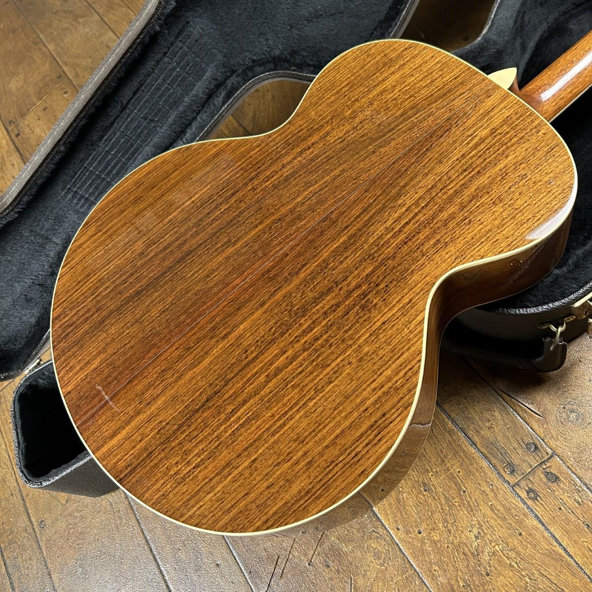 ジャンボサイズのボディはスプルーストップにインディアンローズウッドサイド/バックのオール単板仕様。