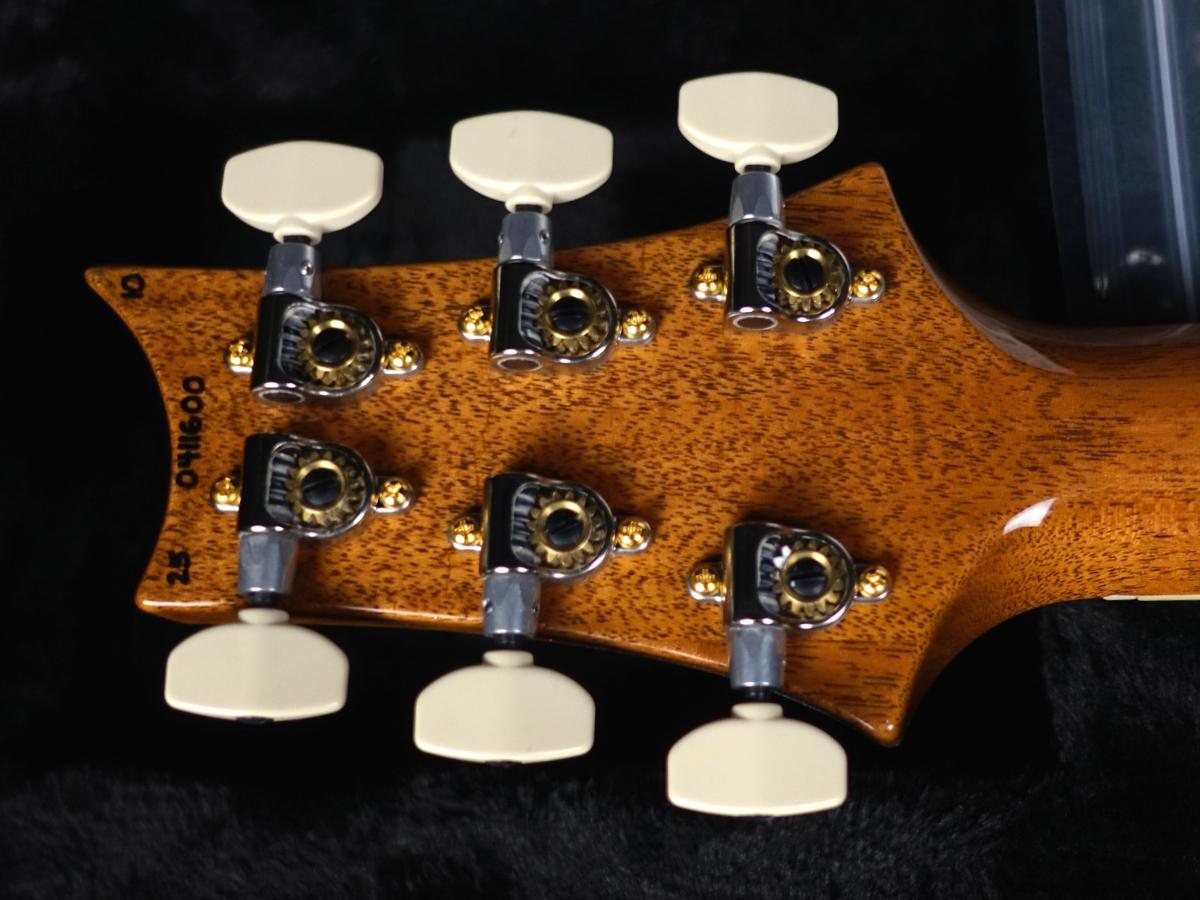 バインディングが施された22フレットのネックは、トーンとサステインを向上させる事を考慮し程よく肉厚になっており、ブラス製サドルとスチール・スタッドを使用した2ピース・ブリッジ、ボーン・ナット、そしてブラス・シャフトを使用したPRS Phase IIIチューナーといったこのMcCarty 594の根幹となる仕様に加え、ヴィンテージ・ギターにインスパイアされ、温かみのある芳醇なヴィンテージ・サウンドを生み出すMcCarty lllを今回新たに搭載。