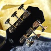オールマホガニーボディにはアンティークエボニーフィニッシュが施され、トップとバックにはエイジド加工が施されたマルチプライ・バインディングを採用。