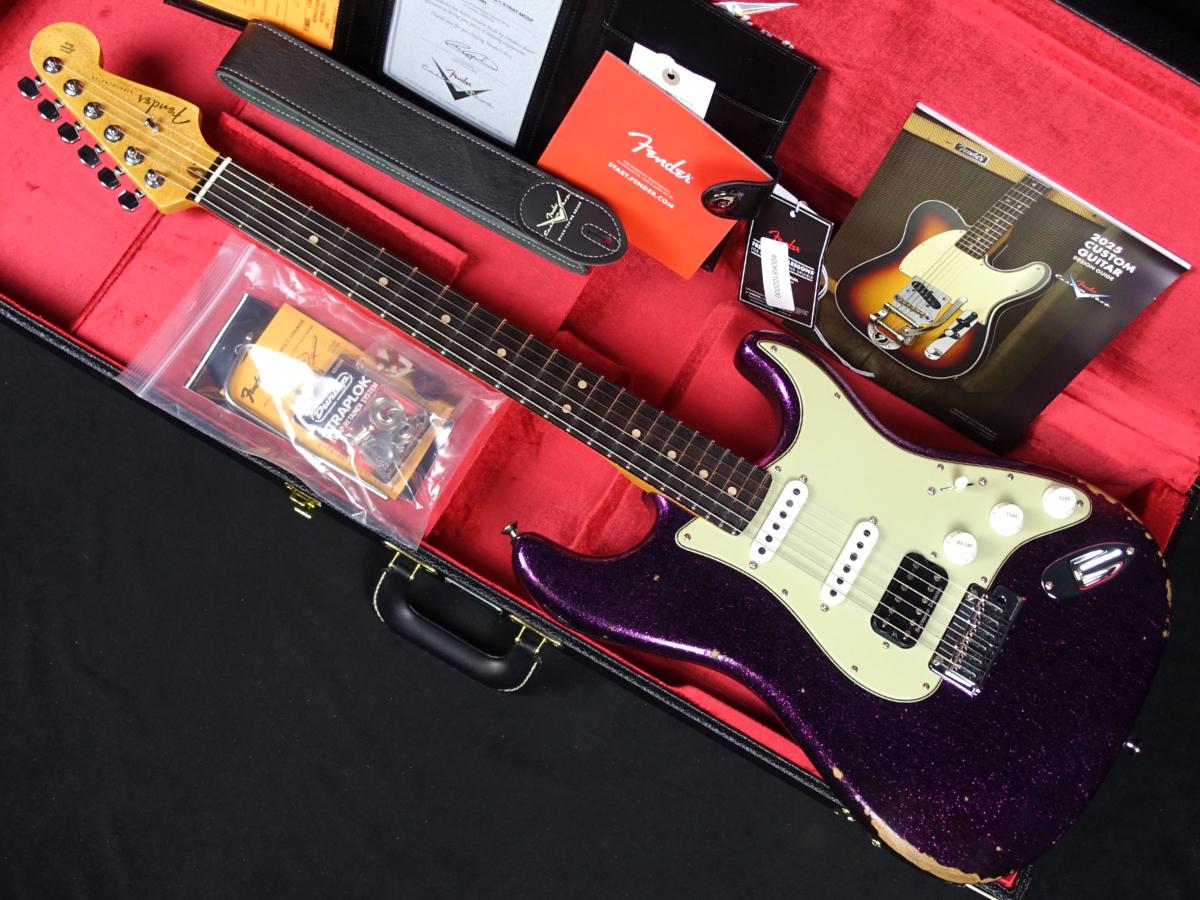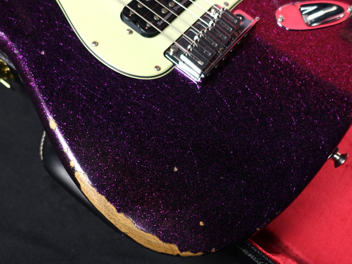 メタリックラメの入ったパープルカラーの"Magenta Sparkle"が採用されたイベントモデル"Custom Deluxe HB S-1 Strat Relic with Closet Classic Hardware Magenta Sparkle"
