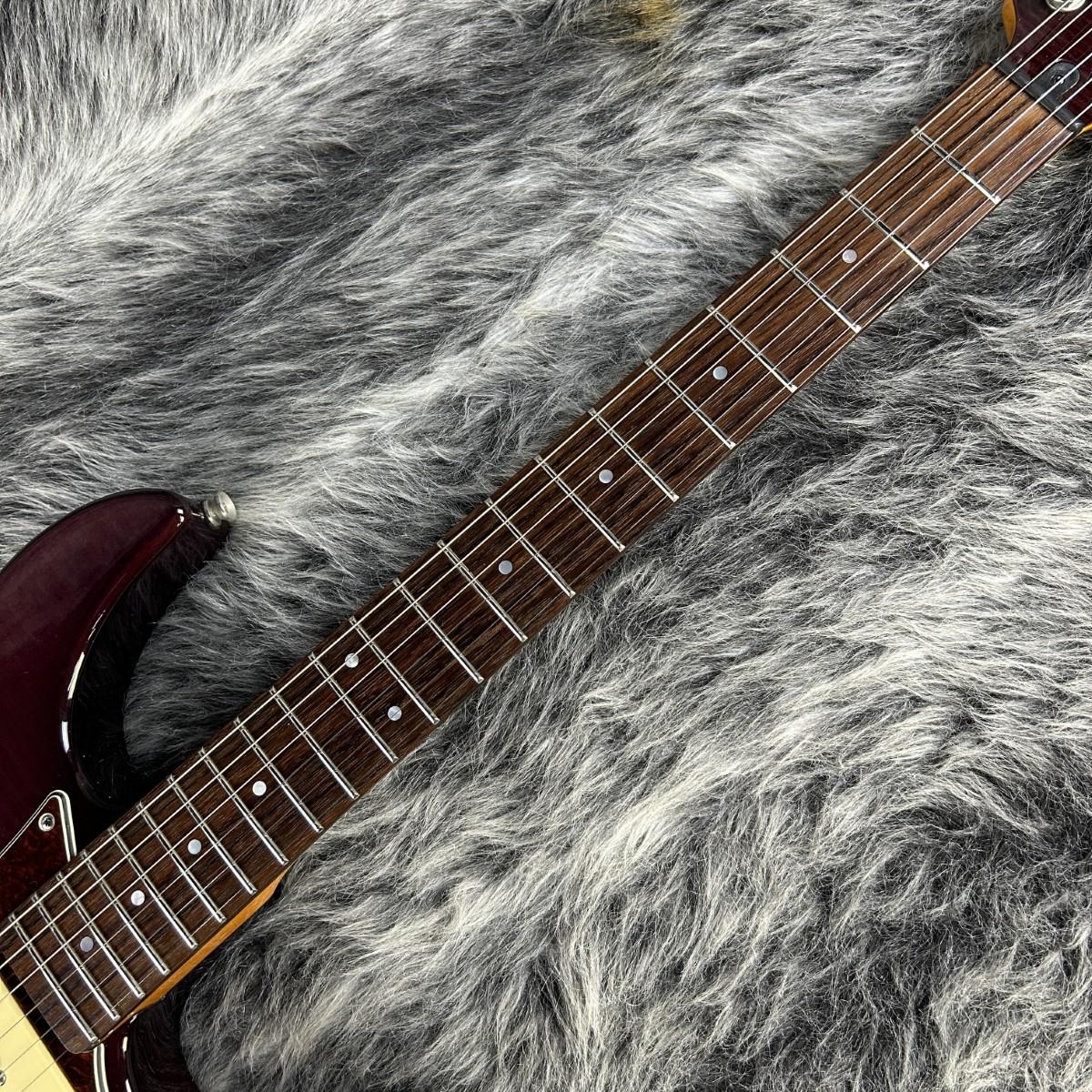 フレイムメイプルトップ/アルダーバックのボディにメイプルネックローズウッド指板のマテリアル。