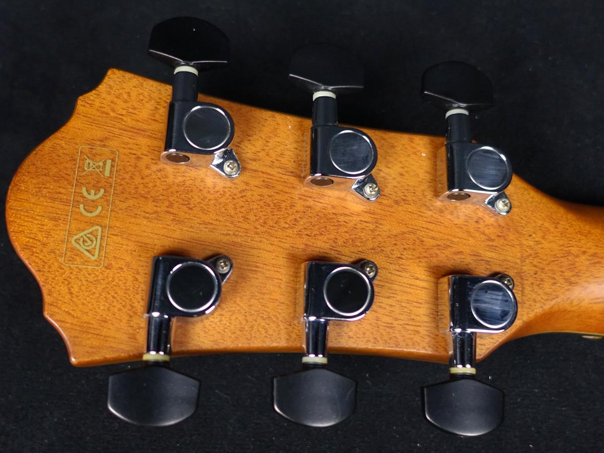 フレットはローポジションに軽微な消耗が見受けられるものの、全体的に7割程度の高さを残しており、気になるようなビビりや音詰まりなく演奏していただけます。