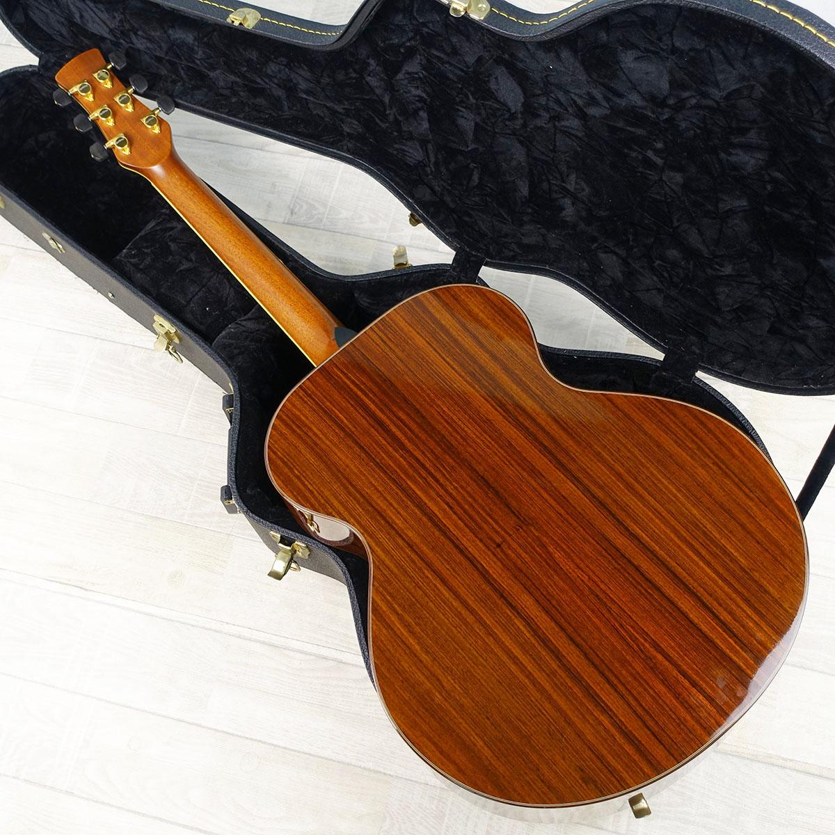 スプルーストップ、ローズウッドサイド&バック、マホガニーネックにエボニー指板のウッドマテリアル。ナット幅は44.5mm、スケールは25.5inch(647.7mm)。