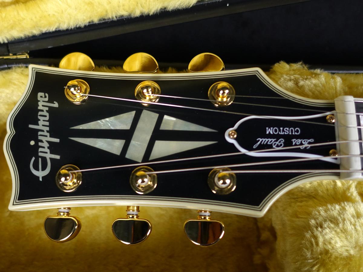 ギブソンスタイルの"オープンブック ヘッドストックには、マザーオブパール”によるスプリットダイアモンド・インレイとエピフォン・ロゴのインレイが施されています。