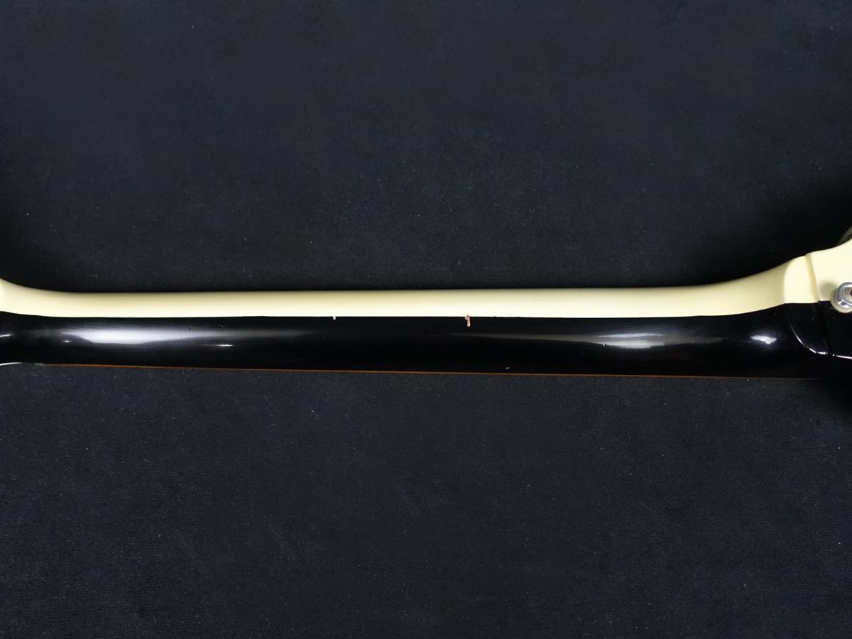目立つ箇所では6弦側ジョイント部のボディとネックの境界に沿って塗装のヒビ割れ/欠けが見受けられるなど、強い使用感が多数見受けられます。
