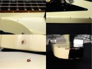 ボディに2箇所のストラップピン移設跡(6弦側ネックジョイント部付近と6弦側ボディエンド付近でいずれも穴埋め済)が見受けられる他、