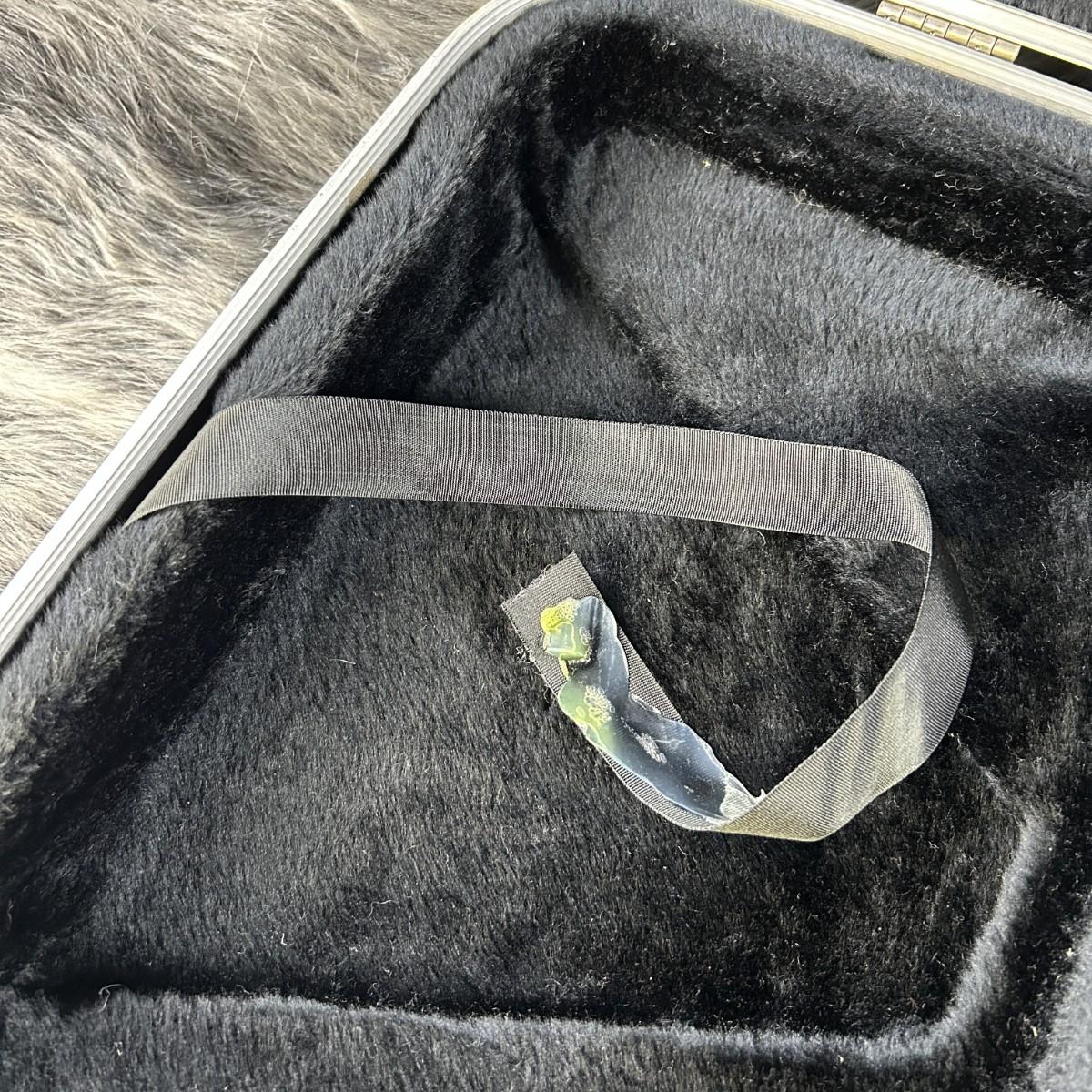 ハードケースが付属いたしますが、蓋を支える紐が外れており全開になってしまいます。
