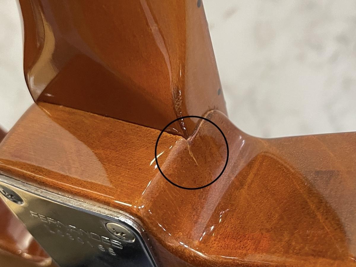 またネックには波打ちがあり、弦高は1弦12フレットポジションで約2,0mmと高めです。