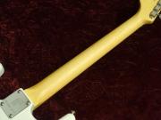 ホワイトのサテンフィニッシュを施したアッシュボディーはセンター部分を残し左右をくり抜いたシンライン構造。オリジナルのアルミ削り出しエスカッションにマウントされたCuNiFe Wide Range Humbuckerと合わせる事で太く温かい音色を生み出します。