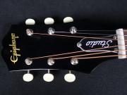 さらに、L-00モデルと同様のダークなトータスシェル柄のピックガード、アイボリー色のプラスチックボタンを備えた3連チューナー、そして金色のシルクスクリーンによるエピフォン・ロゴと60年代カラマズースタイルのヘッドストック等、ヴィンテージスタイルの趣を添えるディテールも施されています。